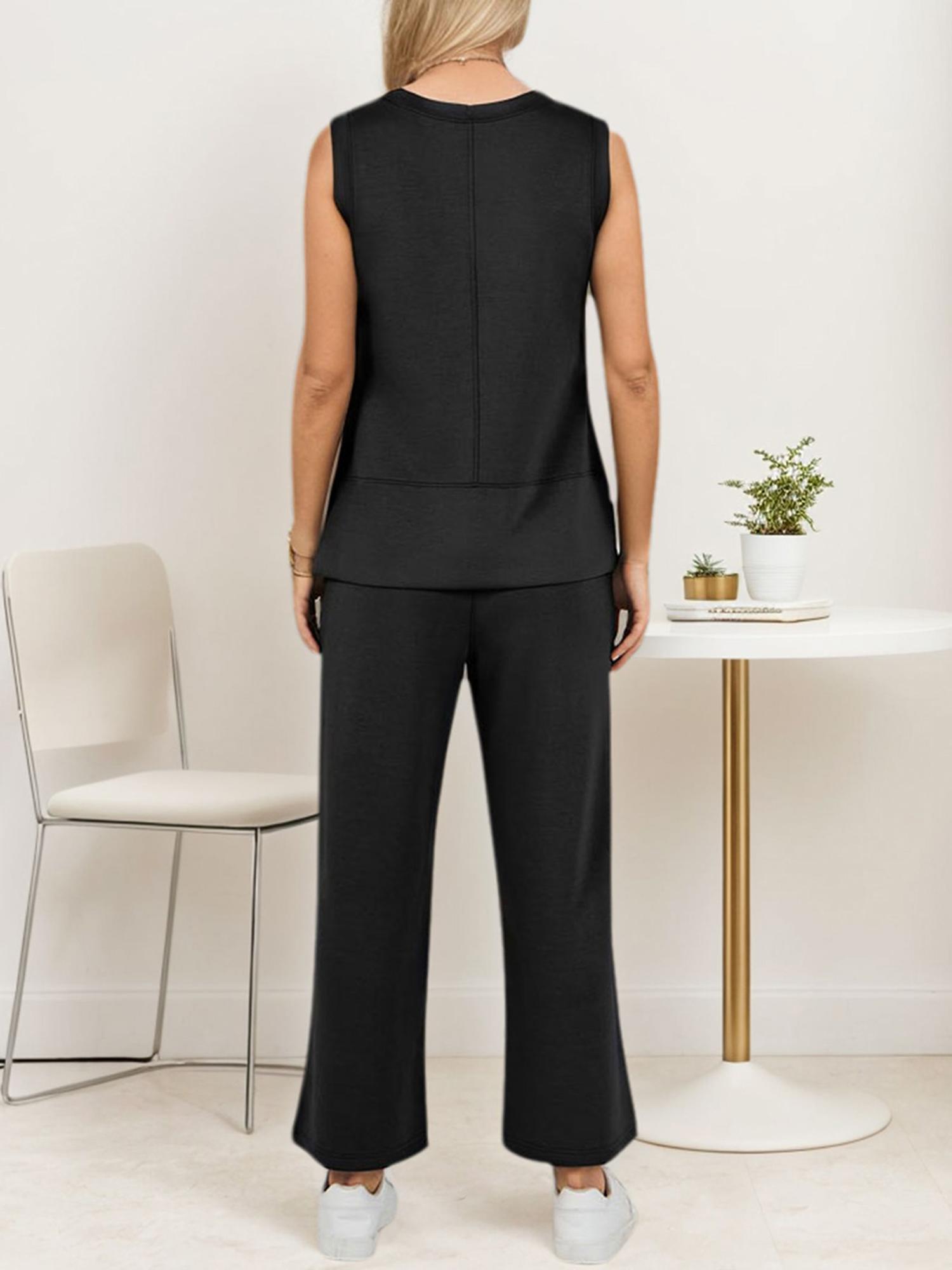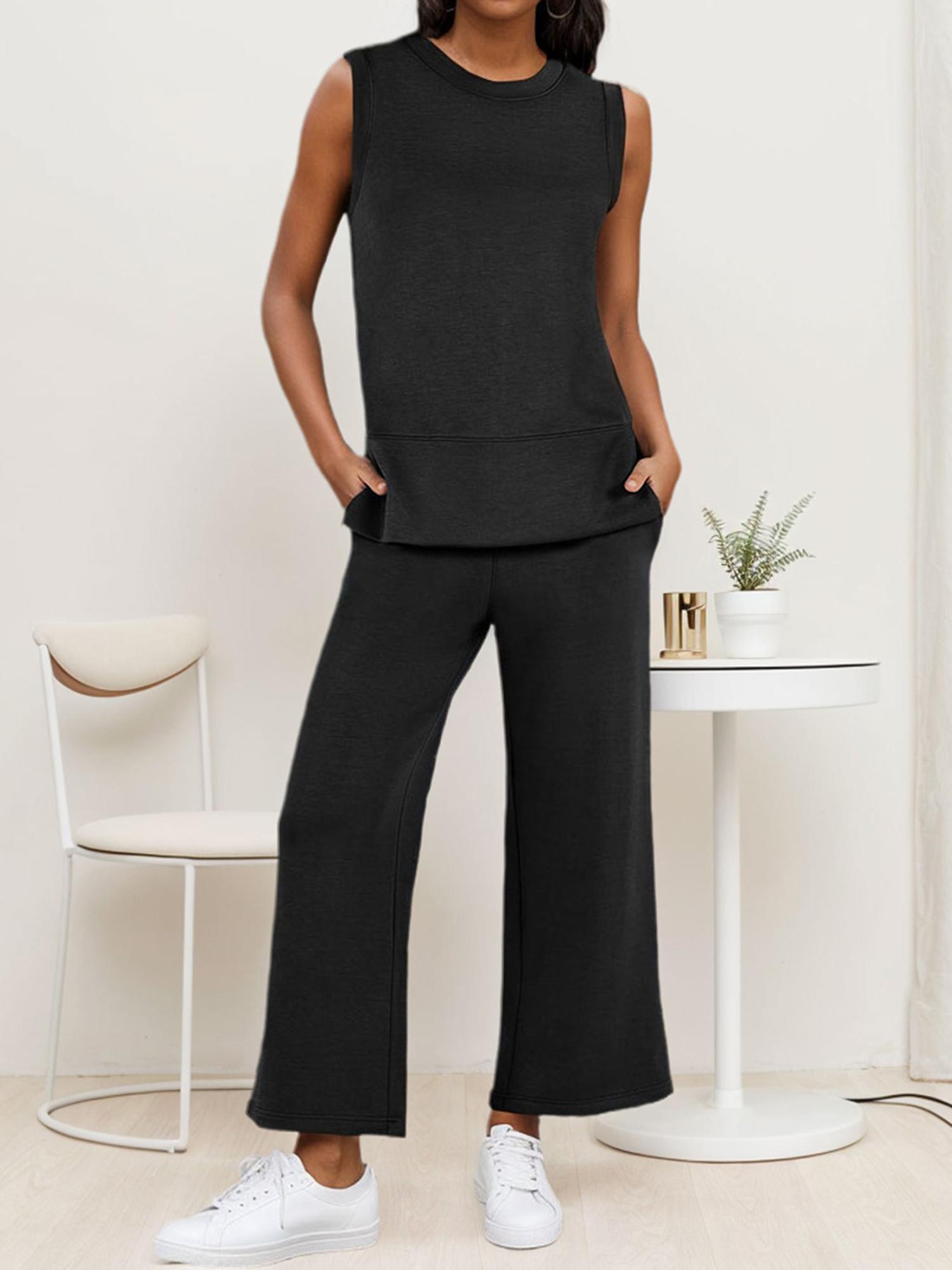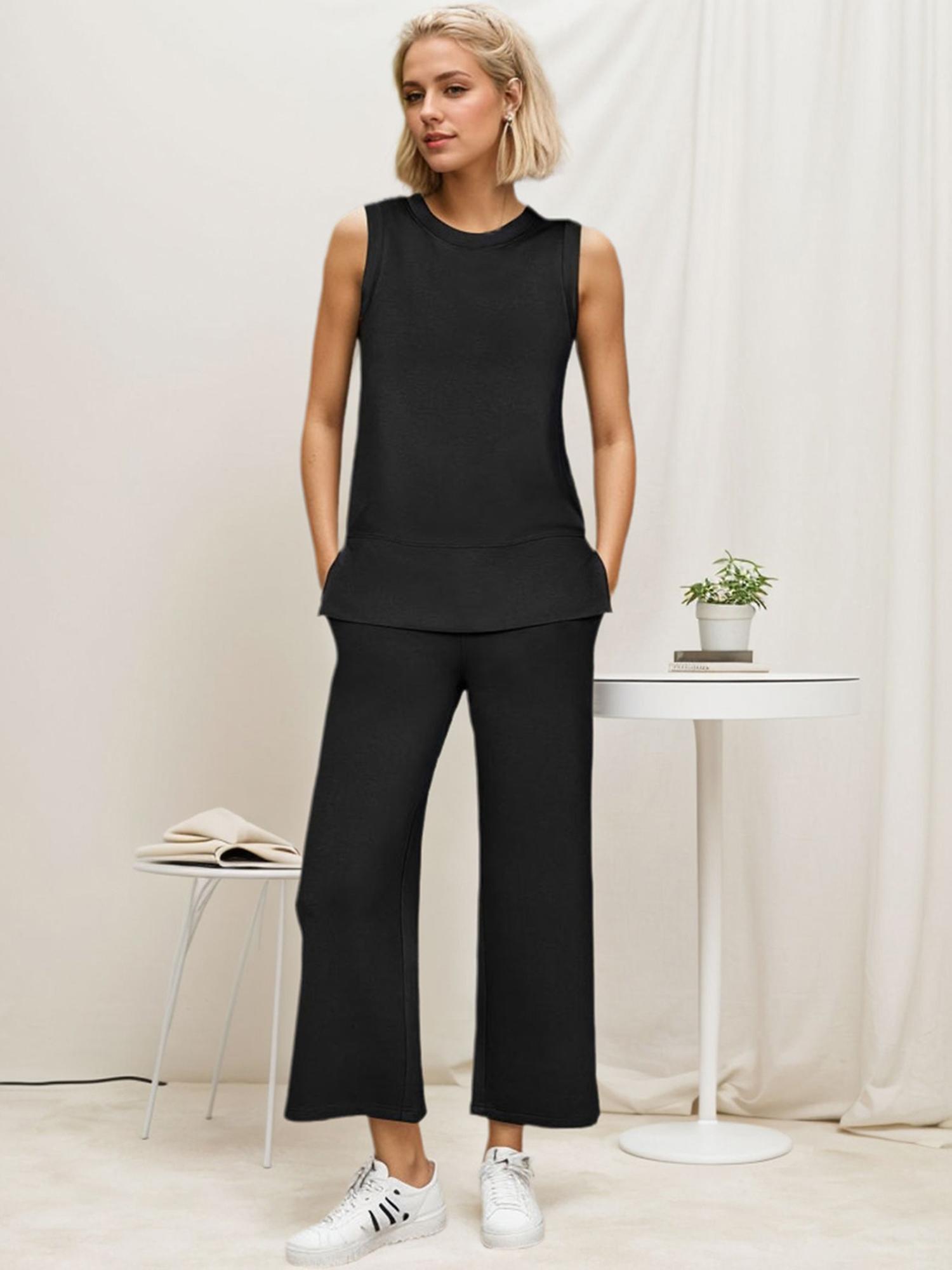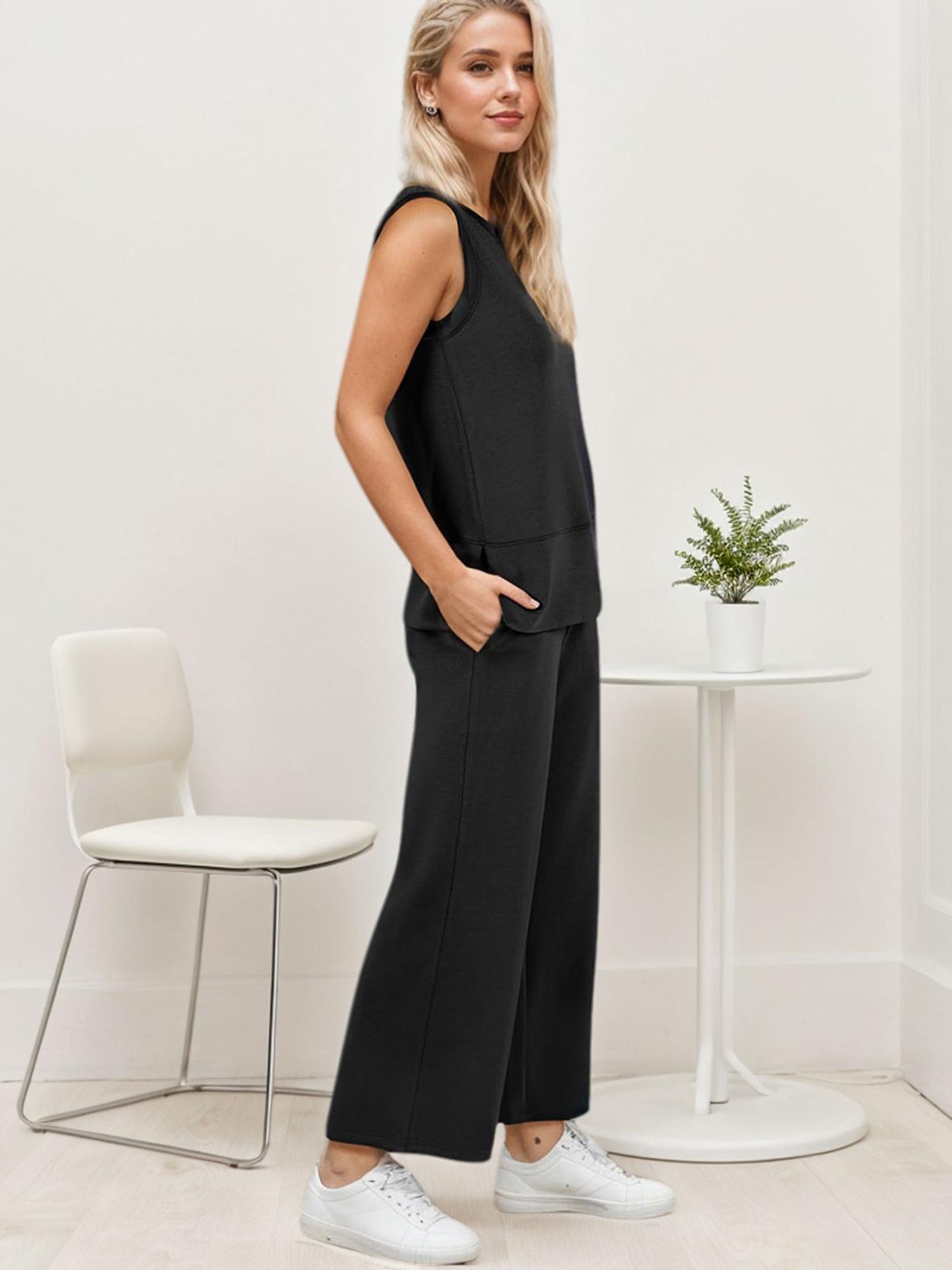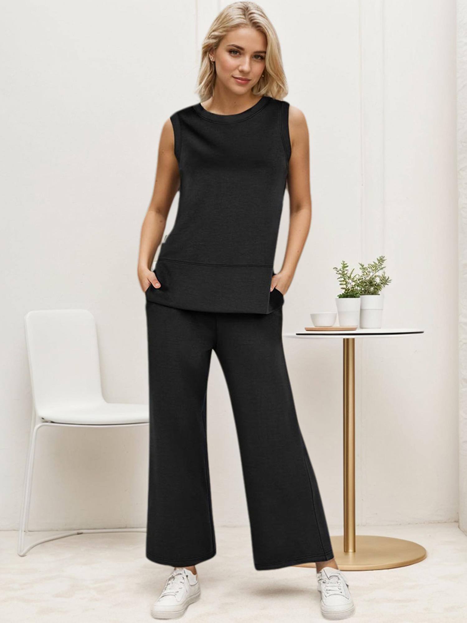 Women's 2 Piece Sets Summer Travel Airplane Outfits Sleeveless Wide Leg Casual Lounge Matching Sweat Set Sweatsuits