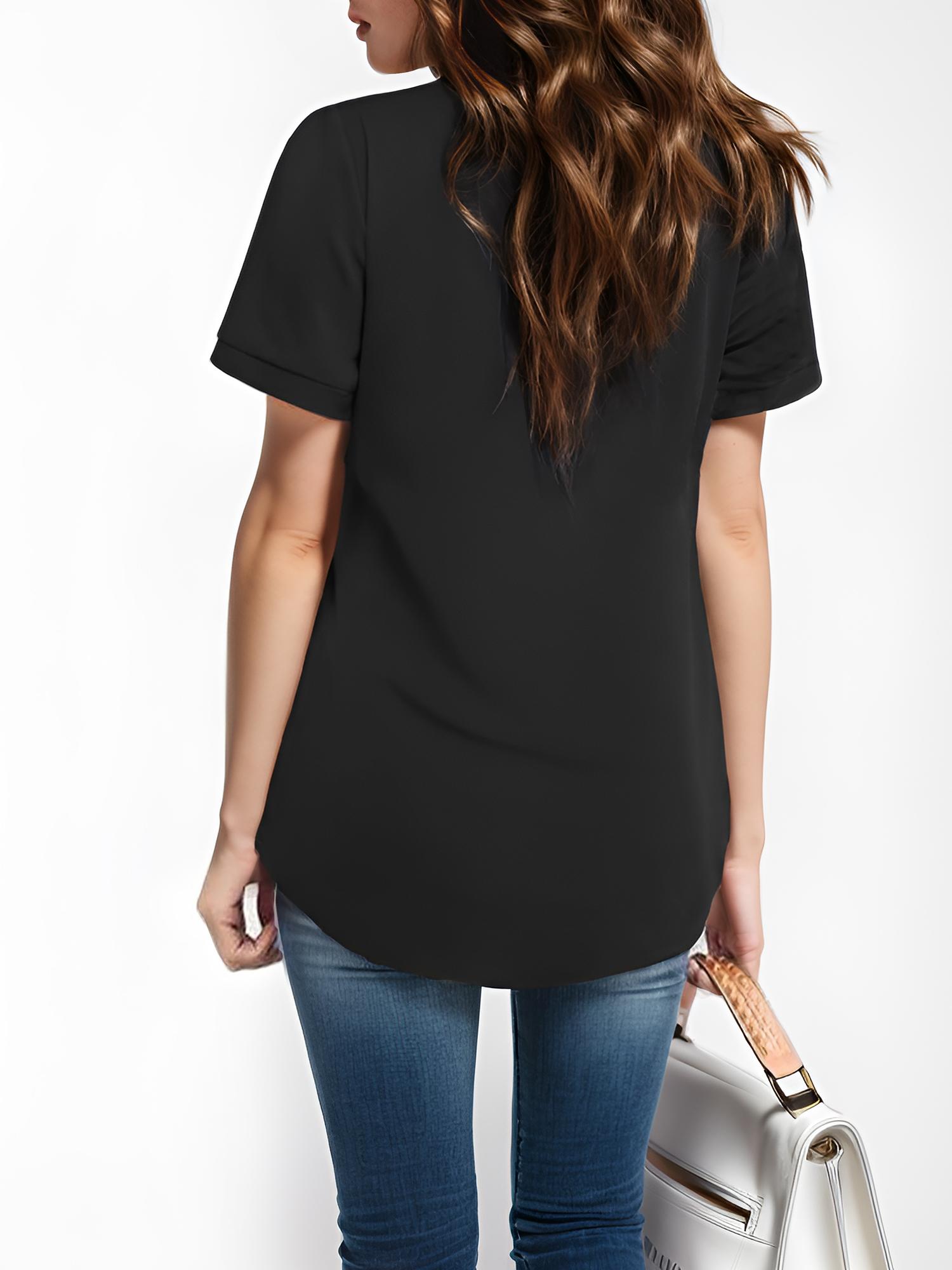 Womens V Neck Short Sleeve Curved Hem Sheer Chiffon Blouse Shirts Summer Tops