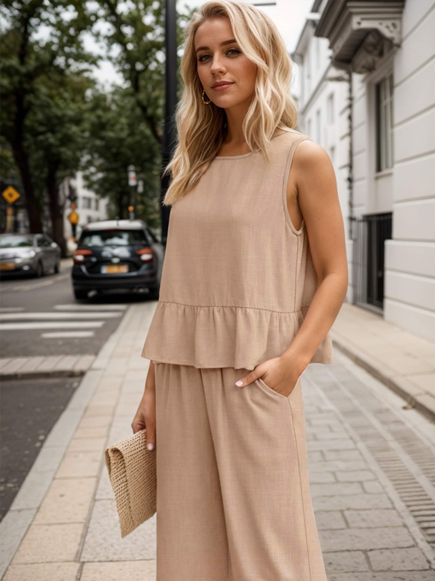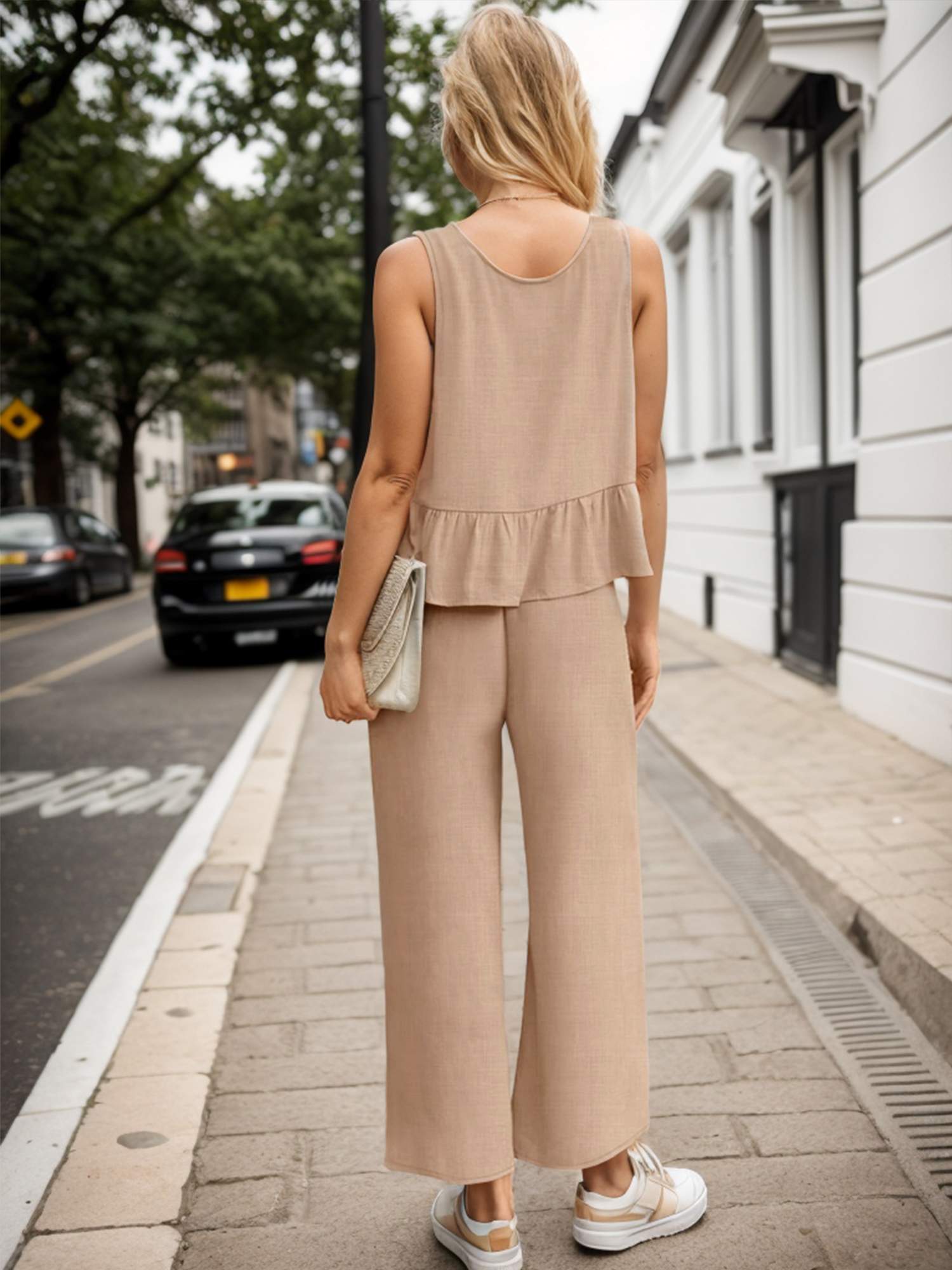 Womens Summer 2 Piece Outfits Linen Crop Tank Tops Lounge Matching Sets & Long Track Pants Tracksuits 2025