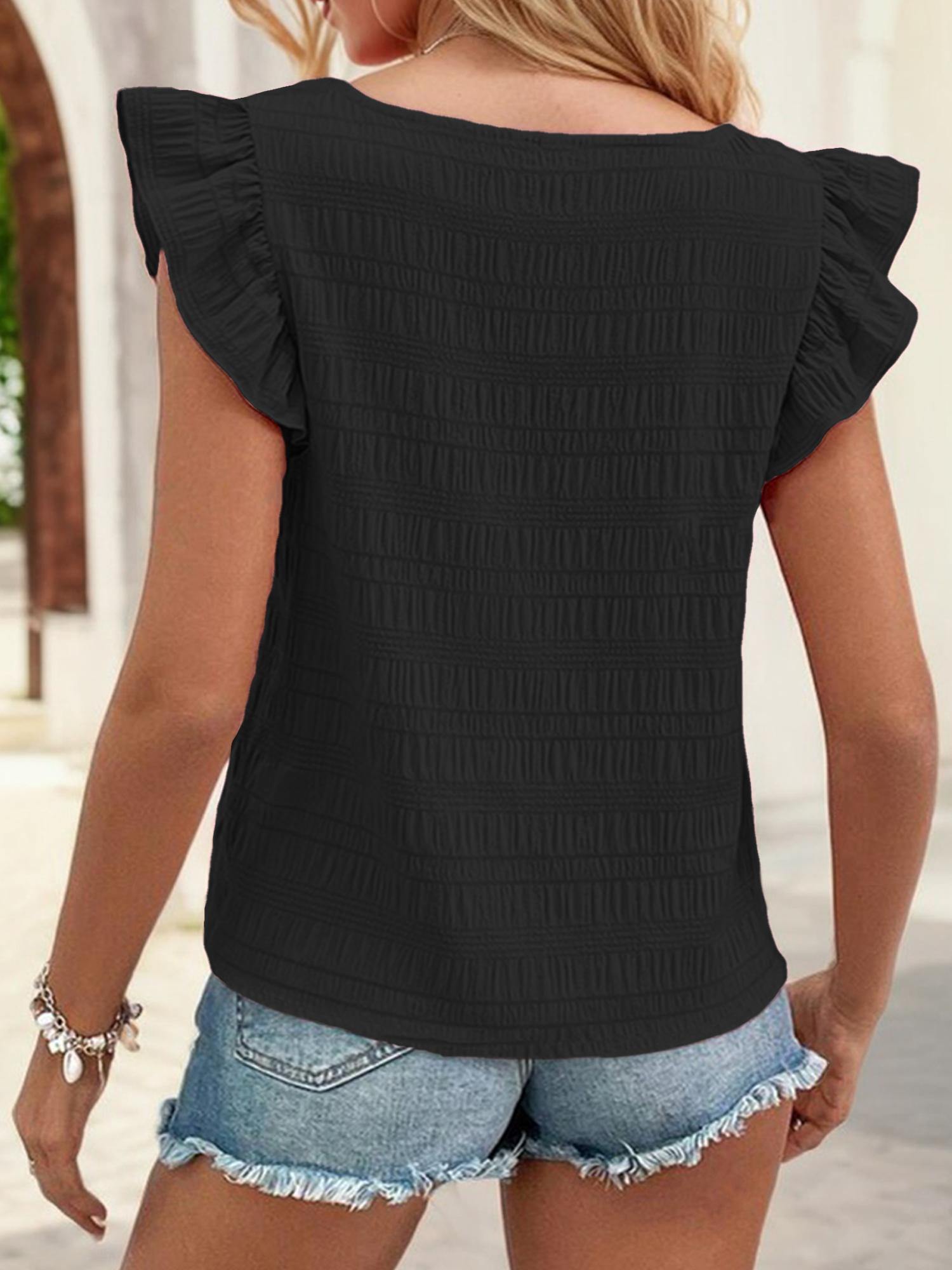 Women's 2025 Summer Ruffle Cap Sleeve Blouse Square Neck Textured Shirt Dressy Casual Tops