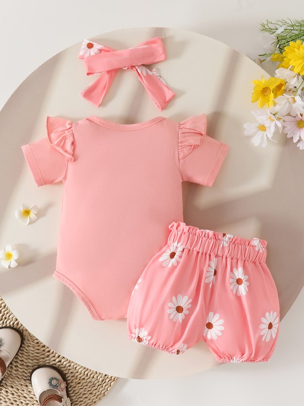 The matching floral shorts bring a fresh and trendy element, making your baby girl stand out in a crowd.
