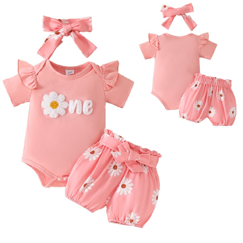 Set Include: 1Pc Romper, 1Pc Shorts, 1Pc Headband
