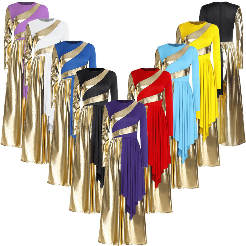 Women’s liturgical dance jumpsuit with color block design is eye-catching enough to make you the spotlight in any performance.