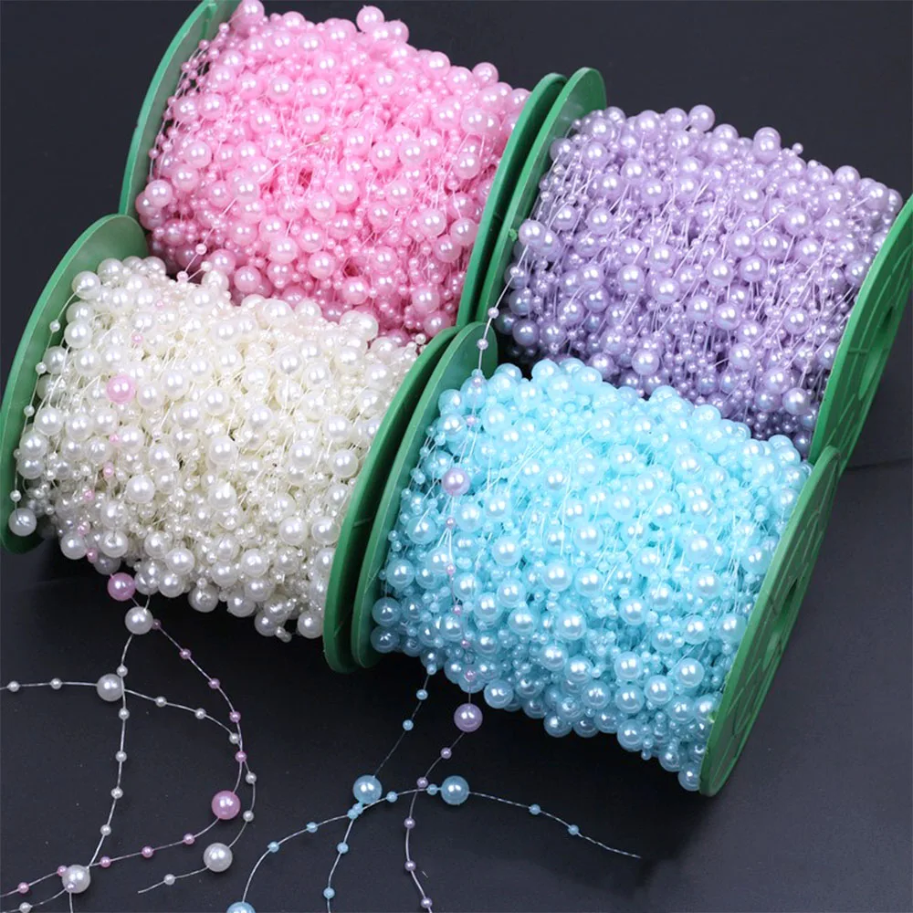 Bulk Pearls Strands: The 5-yard round pearl on a roll is continuous, odorless, and smooth. These decorating pearls strand fit for both indoor and outdoor use. The 3mm and 8mm beads on a string are perfect for decorating a florist's house, bedroom, or office.