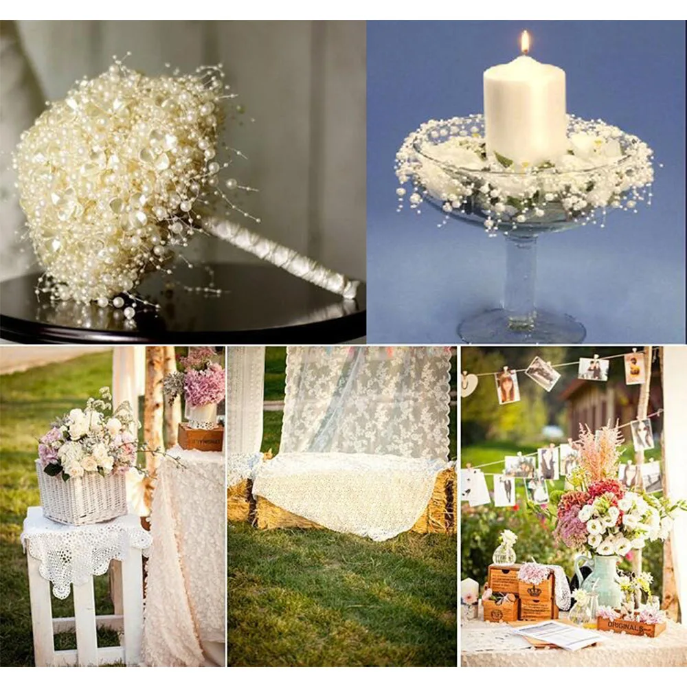 String Pearl Decorations for Wedding Birthday Holiday: The pearl trim by the yard is perfect for Christmas tree garland beads, wedding centerpieces, cakes, vases, wreaths, bowl filler, flowers bouquets, tables, chairs, backdrops, and wrapping gifts and favors.