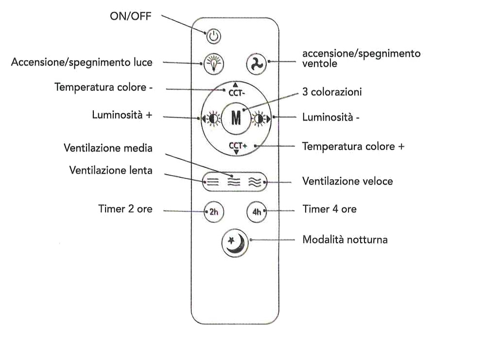 La particolarità di questa lampadine è quella di incorporare un ventilatore con una potenza di 9W. Altra importante particolarità è quella di incorporare diverse temperature (Luce Bianca Calda-3000K, Luce Bianca Naturale-4000K, Luce Bianca Fredda-6500K) colore da scegliere mediante il telecomando fornito in dotazione: