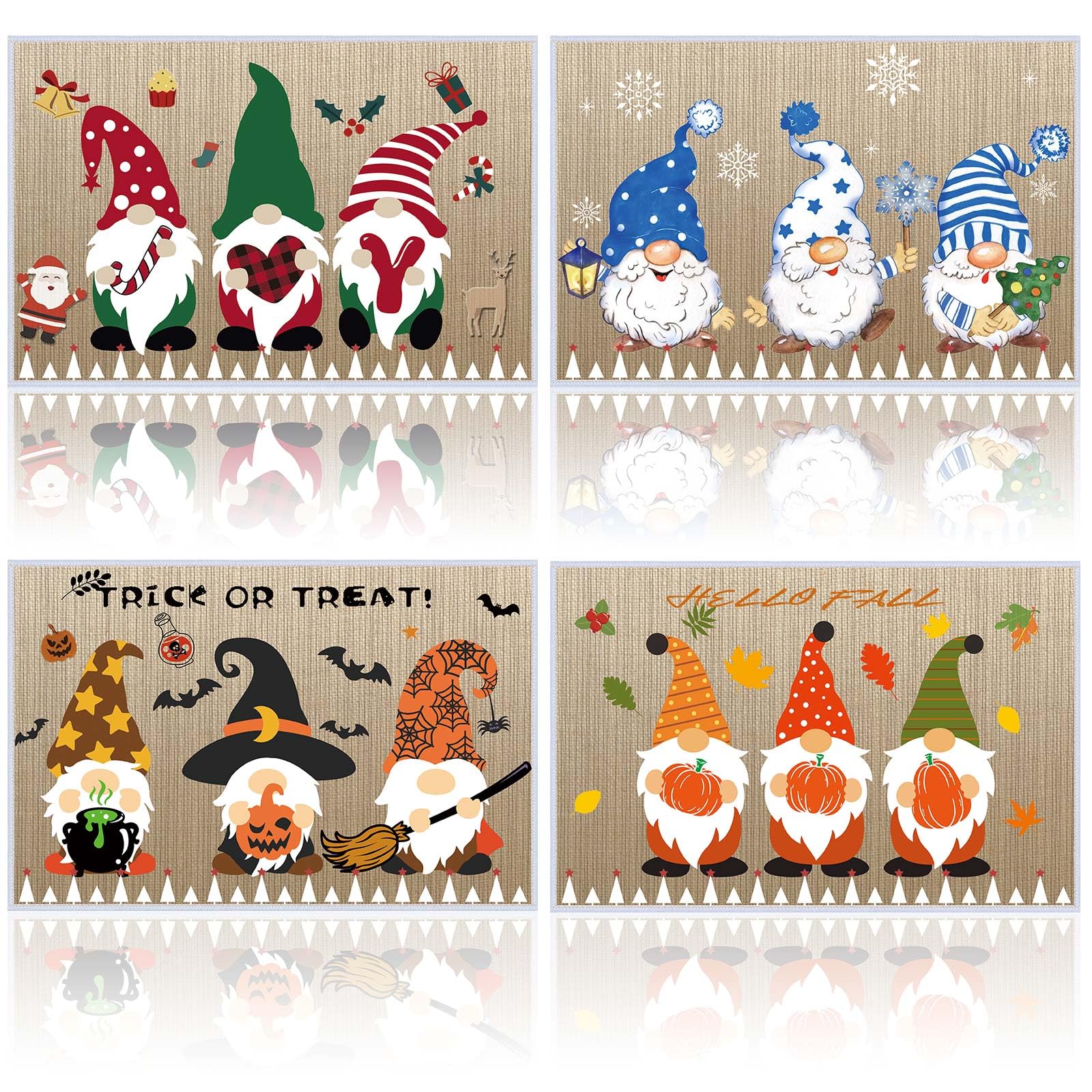 Features: Anti skid design and safety assurance: The durable rubber backing of our fall door mats comes with an anti skid design that acts as a precaution against potential slips. These carefully designed door mats can firmly stay in place, which can prevent many household accidents, particularly for houses with kids or elderly. Sweet heartfelt gifts: Our set of 4 gnome front porch rug makes an ideal gift for family and friends. Not only do they serve a practical purpose in keeping homes clean and tidy, these charming doormats also set a festive mood with their holiday themed gnome designs. Whether for Halloween, Thanksgiving, Christmas or the winter season, the gift of a gnome doormat is sure to bring warmth to your loved one's doorstep. Specifications: Material: fibre fabric, polyester interlayer, rubber backing Color: multiple colors (based on different festival theme) Size: about 24 x 16 inches/ 60 x 40 cm Quantity: 4 pieces Package includes: 4 x Gnome door mats Notes: Manual measurement, please allow slight errors on size. The color may exist a slight difference due to different screen displays.