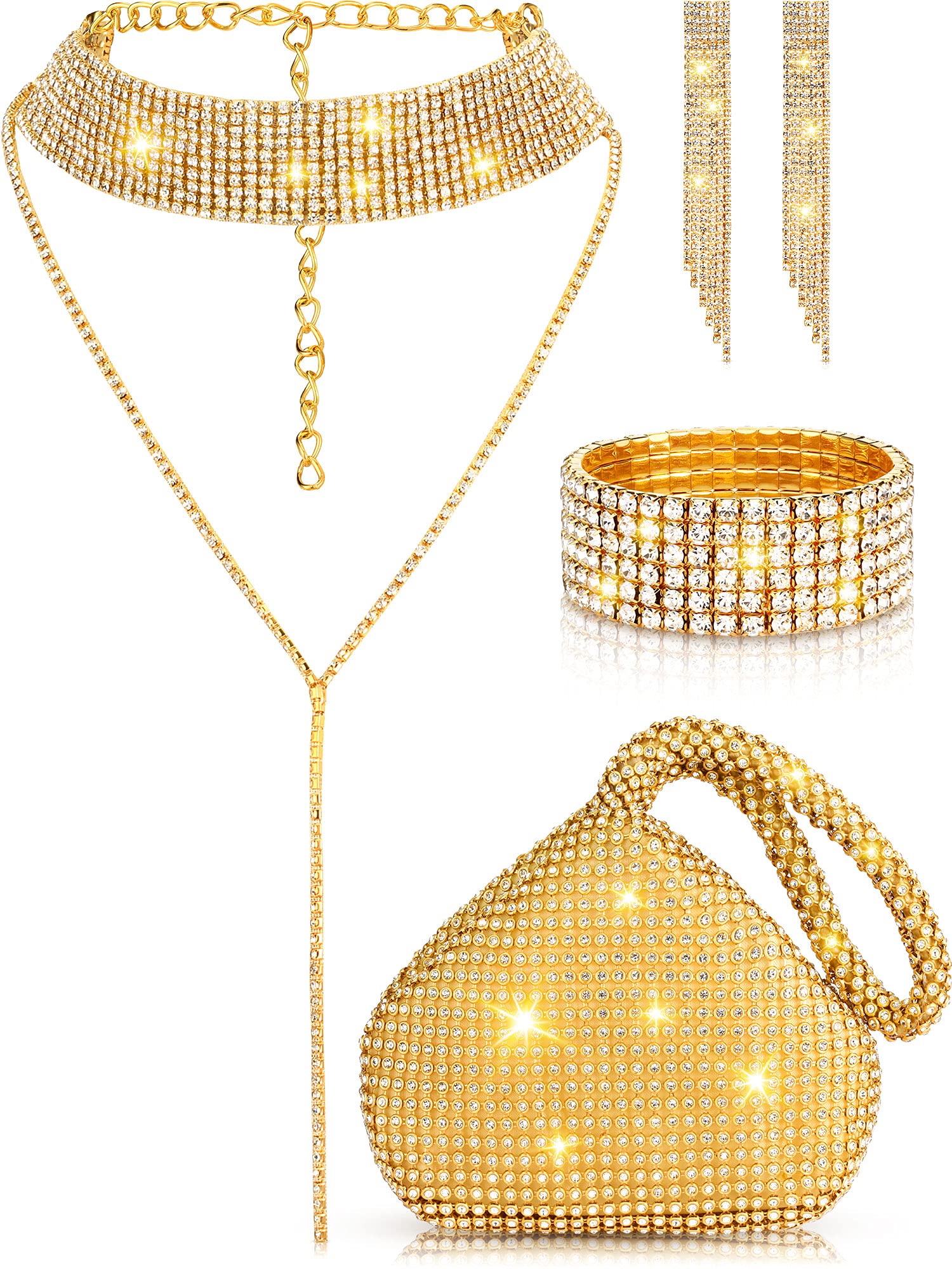 The shiny crystal choker necklace, earrings, bracelet and bag are feature elegant color and bling crystal rhinestone design, which will be shiny under light or sunlight and make you stand out from the crowds. They can be ideal gifts for your lover, friends or family members on birthday, wedding or festivals.