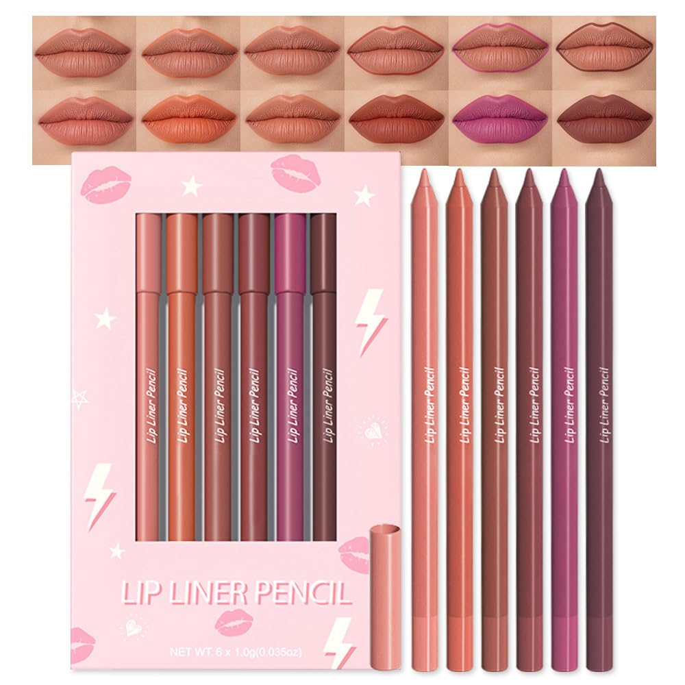 evpct 6Pcs Long-Lasting Lip Liner Pencils Set for Shaping & Sculpting Lips, Coral Orange Brown Red Purple Dark Brown Red Waterproof Longwear Matte Rich Lip Colors Liner Crayon Lipstick 02