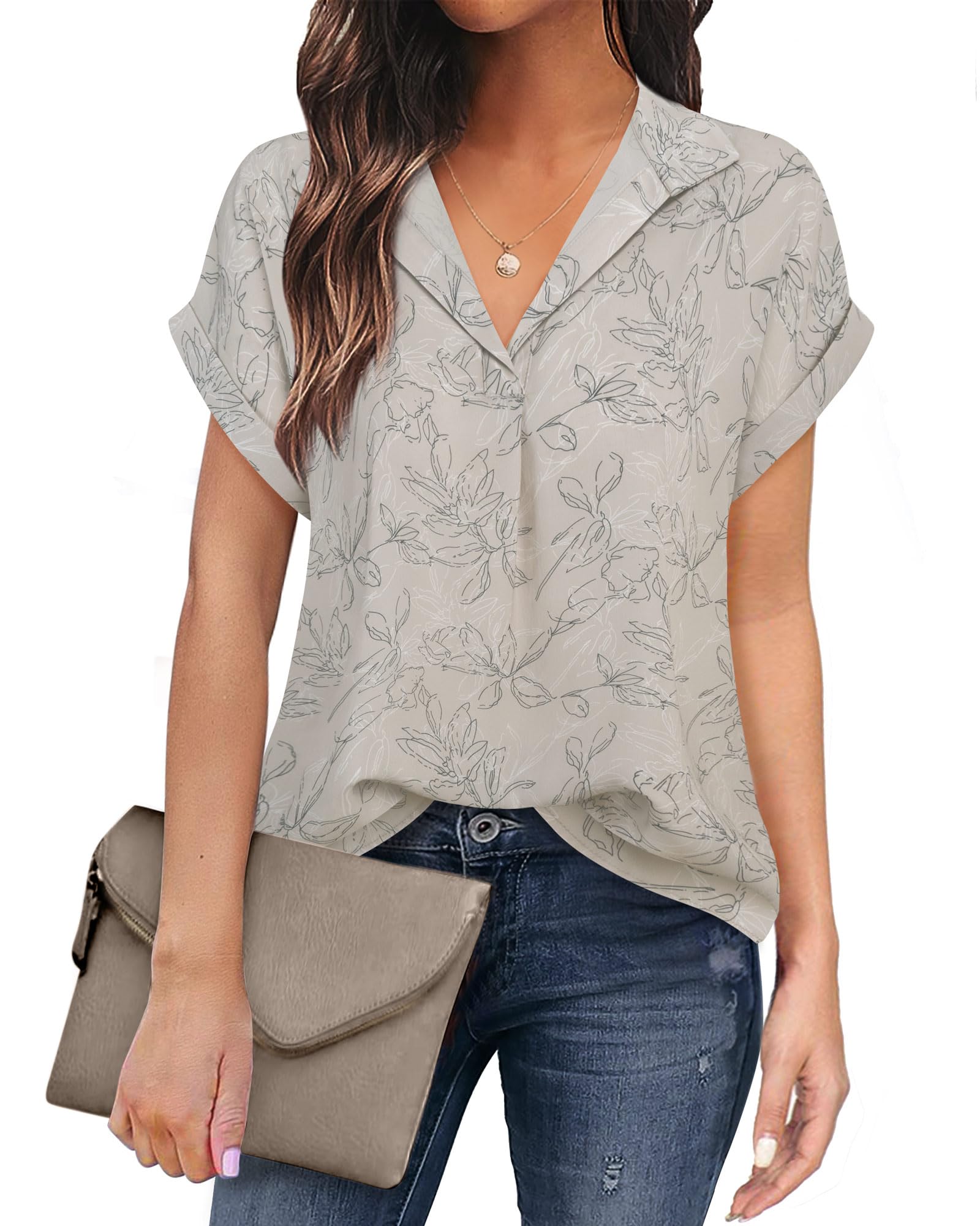 Material: 100% Polyester.High-quality chiffon material.soft,wrinkle free,lightweight,breathable and not see-through.When wearing these short sleeve blouses for women,you will feel that the fabric is silky smooth and skin friendly.