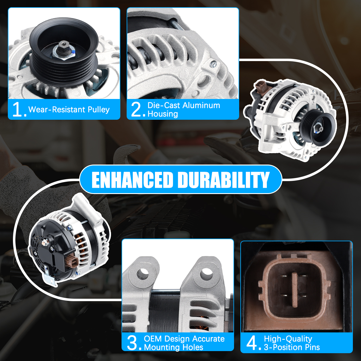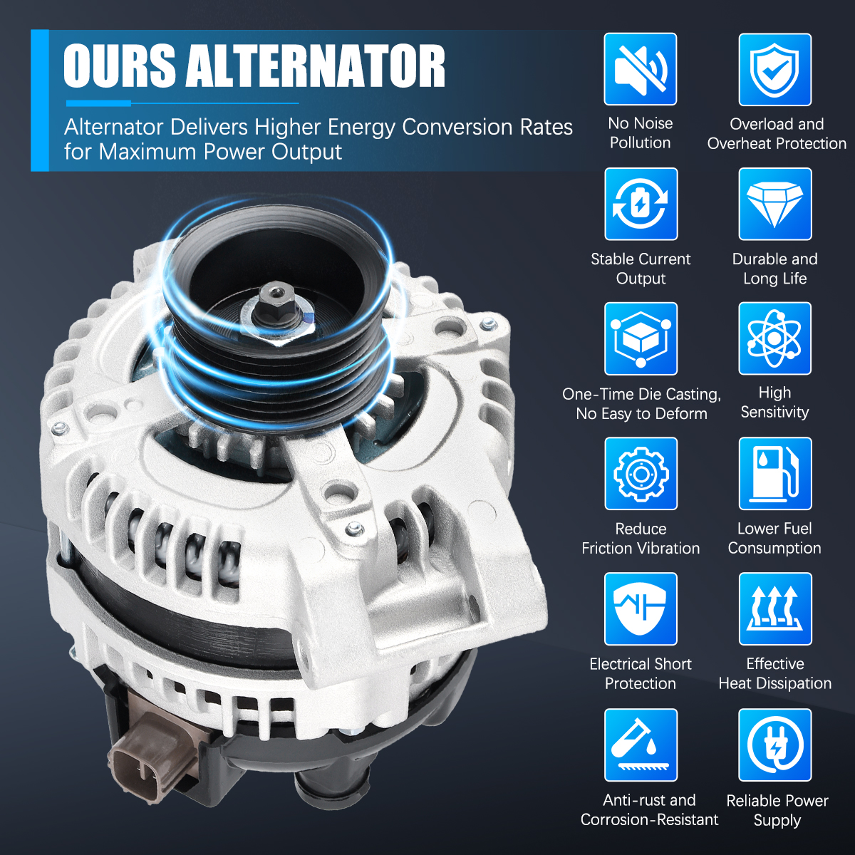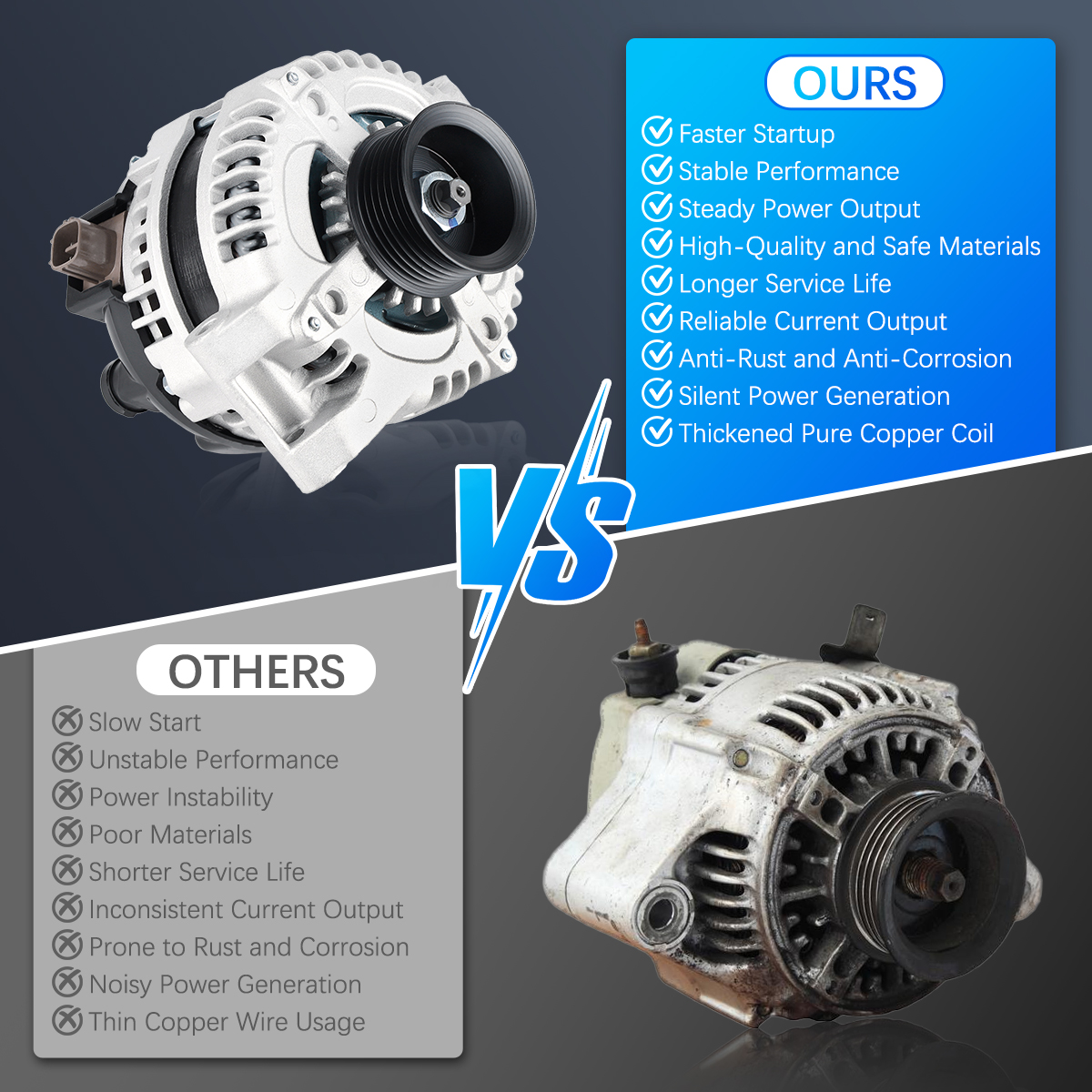 This automotive alternator provides high efficiency and reliability, ensuring stable power supply for your vehicle. It utilizes modern design and manufacturing technologies to deliver excellent performance and provide reliable power for various electrical equipment and charging systems.
