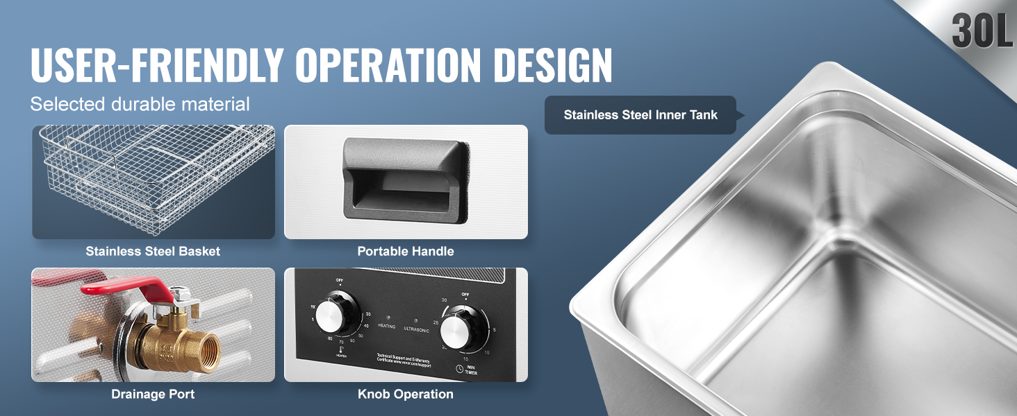 Crafted with high-quality 304 stainless steel tanks, this ultrasonic cleaner machine ensures lasting durability while providing consistent cleaning results, offering you a long-term user experience.