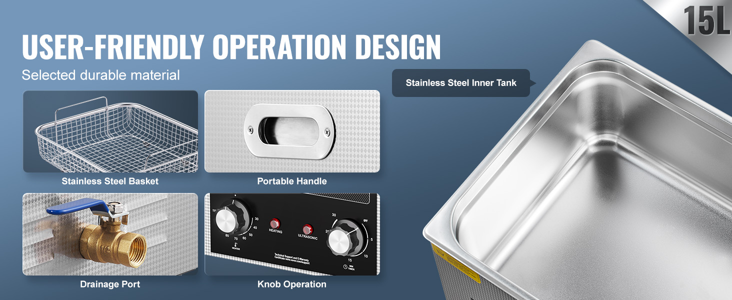 Crafted with high-quality 304 stainless steel tanks, this ultrasonic cleaner machine ensures lasting durability while providing consistent cleaning results, offering you a long-term user experience.
