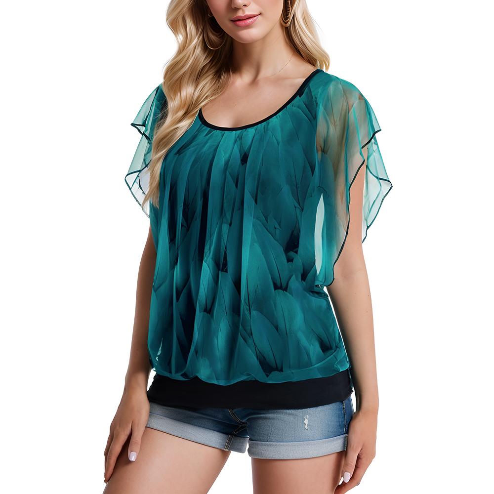 A must have summer tops for women, cute crewneck womens casual blouses, flared batwing semi sheer short sleeve makes you more feminine and flattering, both dressy and casual