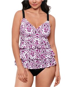 Swim Solutions Women's Printed Tiered Fauxkini One-Piece Swimsuit 8