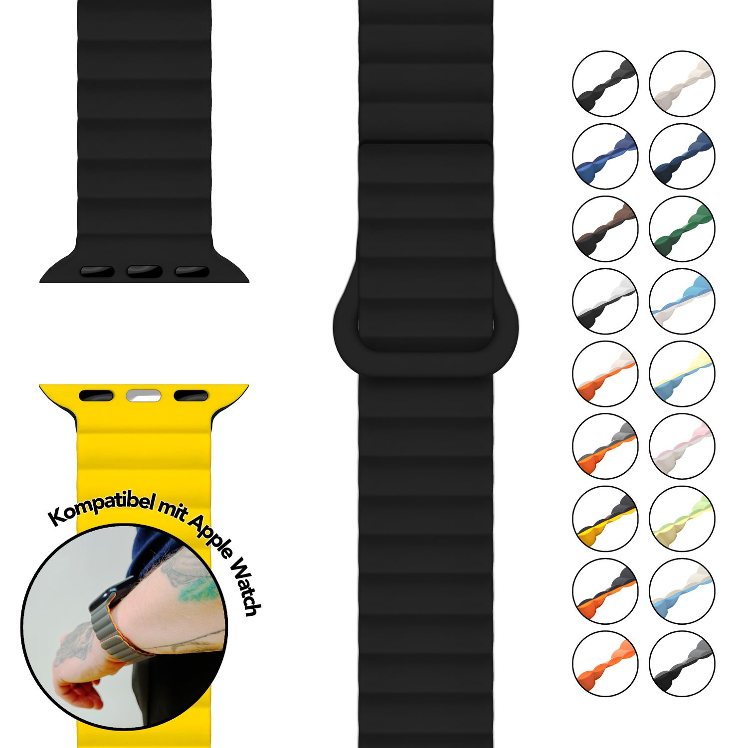 PASSEND FÜR APPLE WATCH | Armband für Apple iWatch Ultra/SE/10/9/8/7/6/5/4/3/2/1 – passend für 42mm, 44mm, 45mm, 46mm, 49mm Gehäusegrößen. Perfekt als Ersatzarmband für Damen und Herren. STARKER MAGNETVERSCHLUSS MIT LOOP-SCHLIEßE | Leistungsstarkes Magnetband kombiniert mit einer flexiblen Loop-Designschließe für sicheren Halt ohne Verrutschen – ideal für Sport und Alltag. VIELSEITIGES DESIGN FÜR JEDE GELEGENHEIT | Elegantes und sportliches Design in modernen Farben.