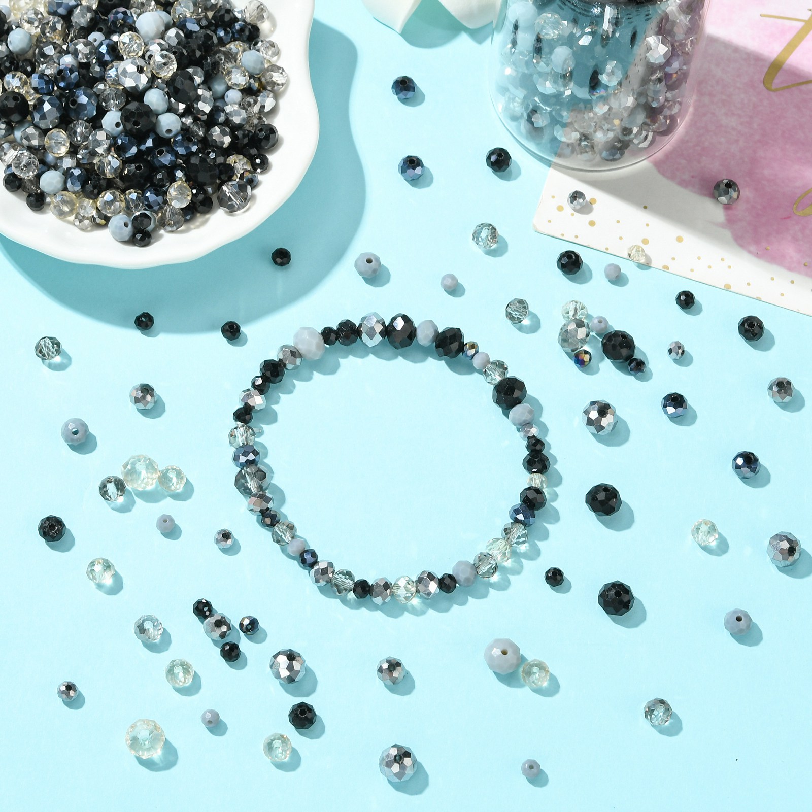 High Quality Material:Not the cheap acrylic beads, these beads mixed with glass beads, jade beads. These various shaped beads are smooth, shiny surfaces, excellent polishing. This bracelet making kit has good stability, and can maintain luster for a long time