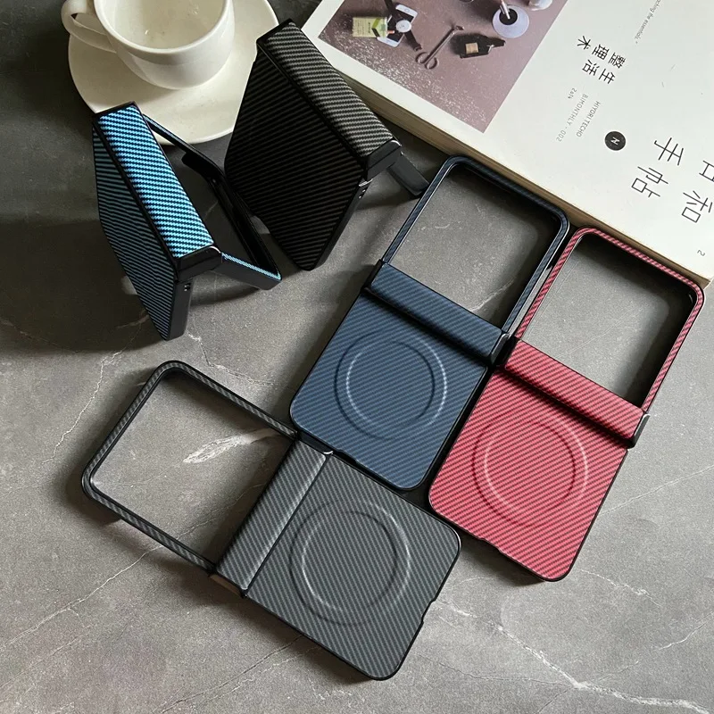 Carbon Fiber Pattern PU Leather Magsafe Case For RAZR Plus 2025 2024 RAZR 60 50 40 Ultra Hinge Armor Cover