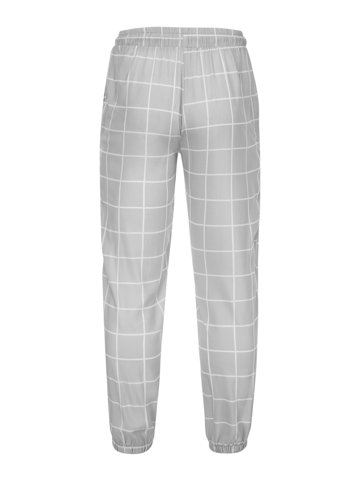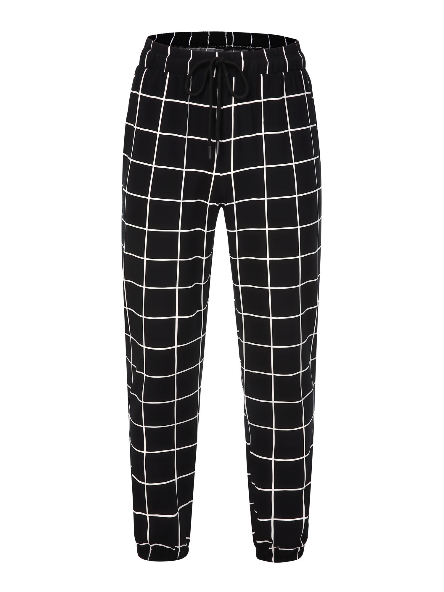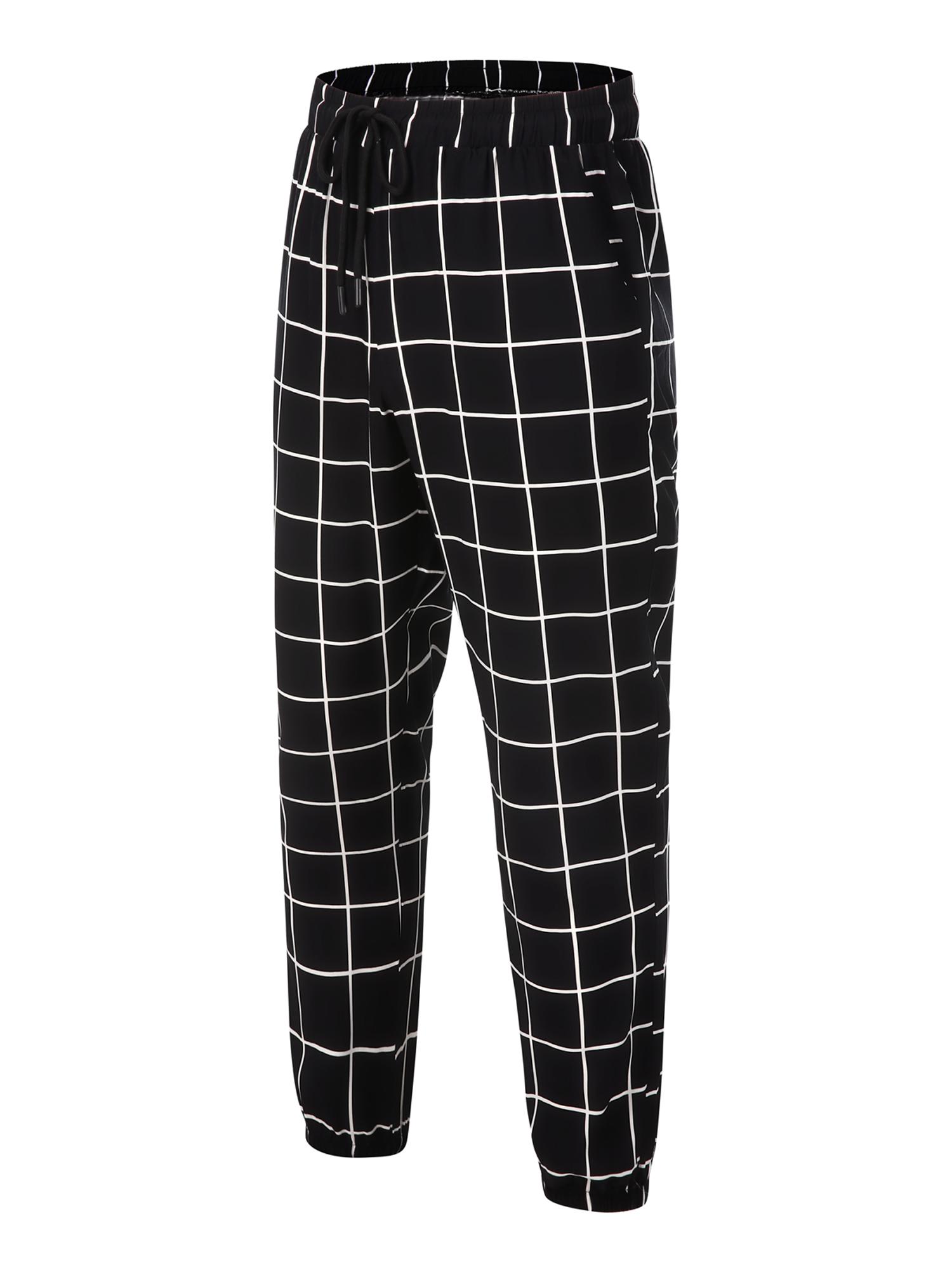 Men's Loose Grid Print Drawstring Waist Pants