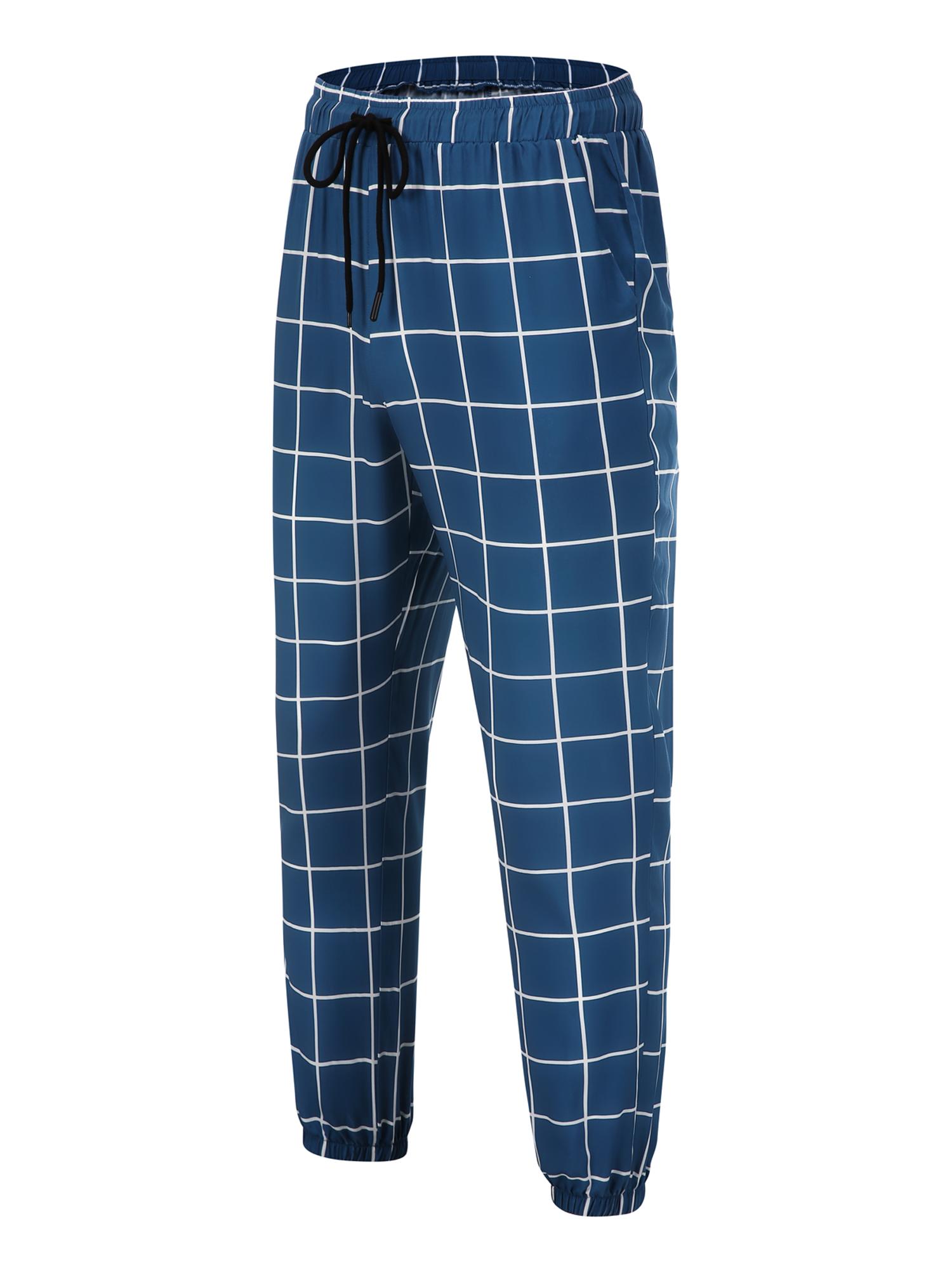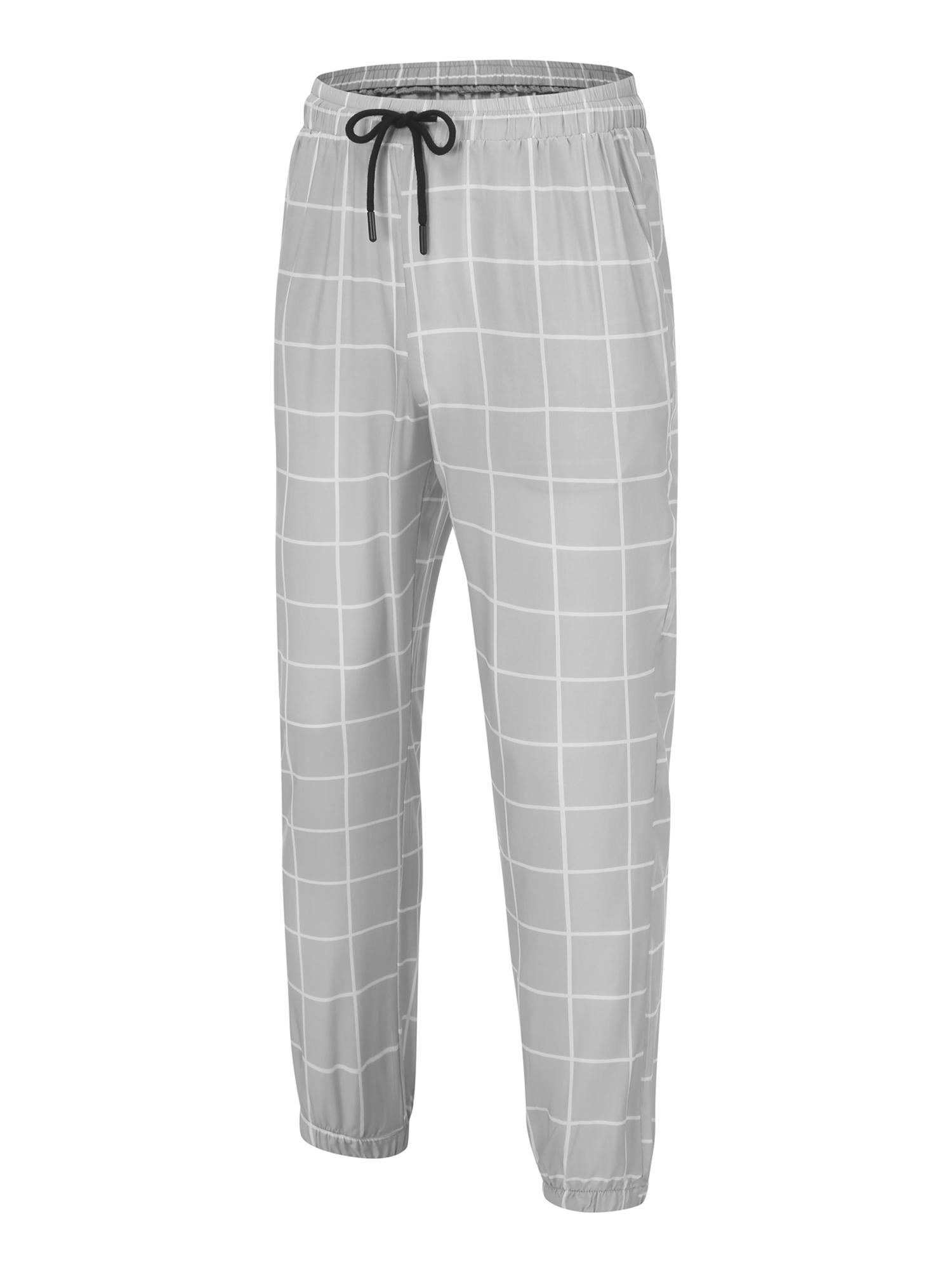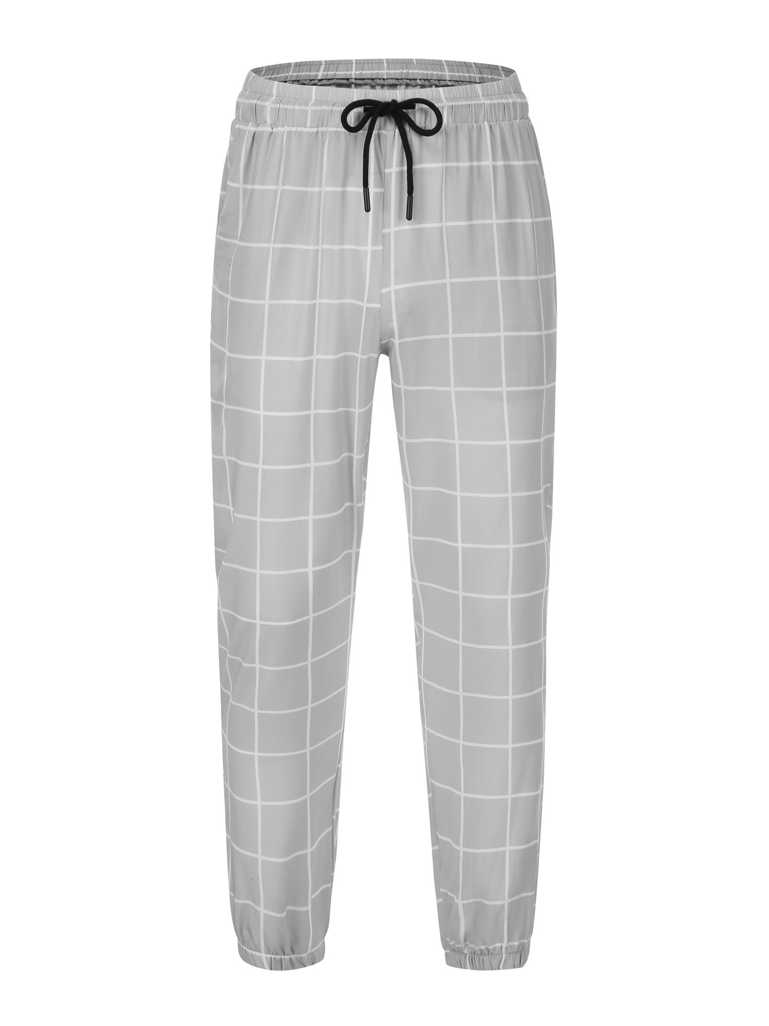 Men's Loose Grid Print Drawstring Waist Pants