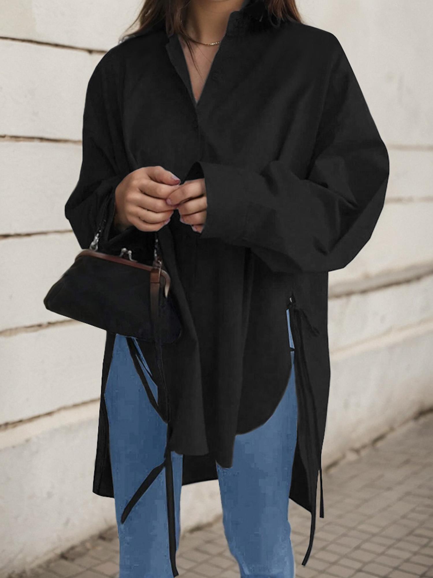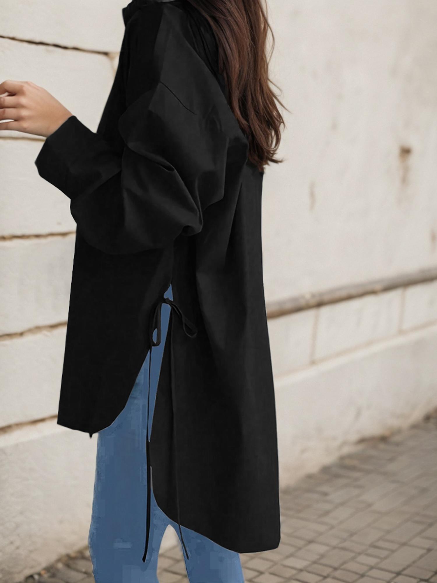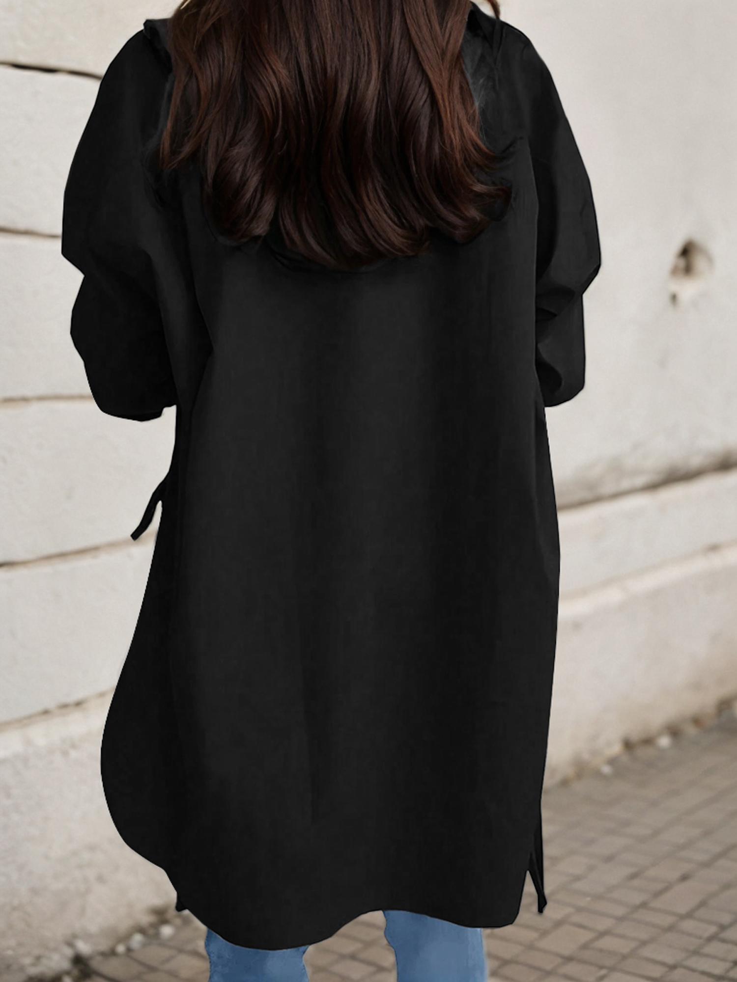 Women Casual Solid Color Lapel Long Sleeve Shirt