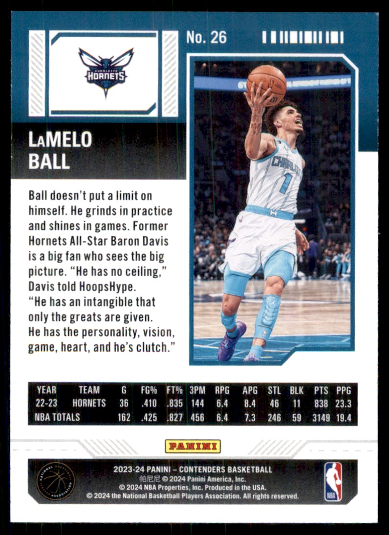 2023-24 Panini Contenders Season Ticket LaMelo Ball Charlotte Hornets #26