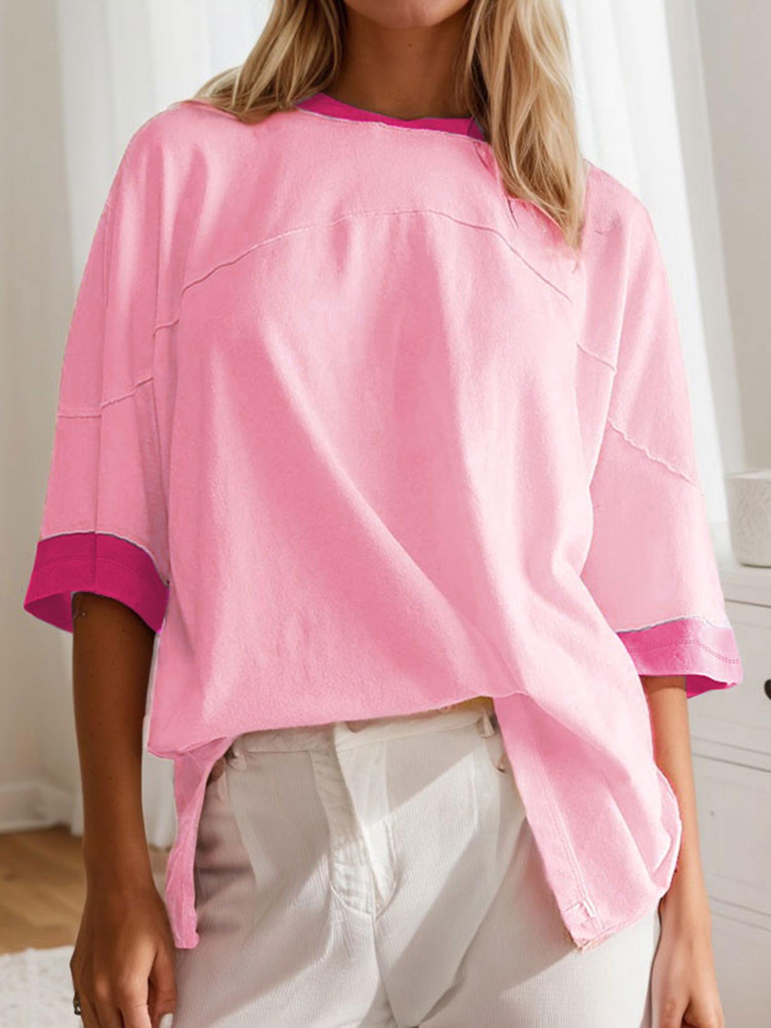 Womens 3/4 Length Sleeve Casual Loose Fit Summer Tee Shirt Basics Cotton t Shirts Trendy Tops
