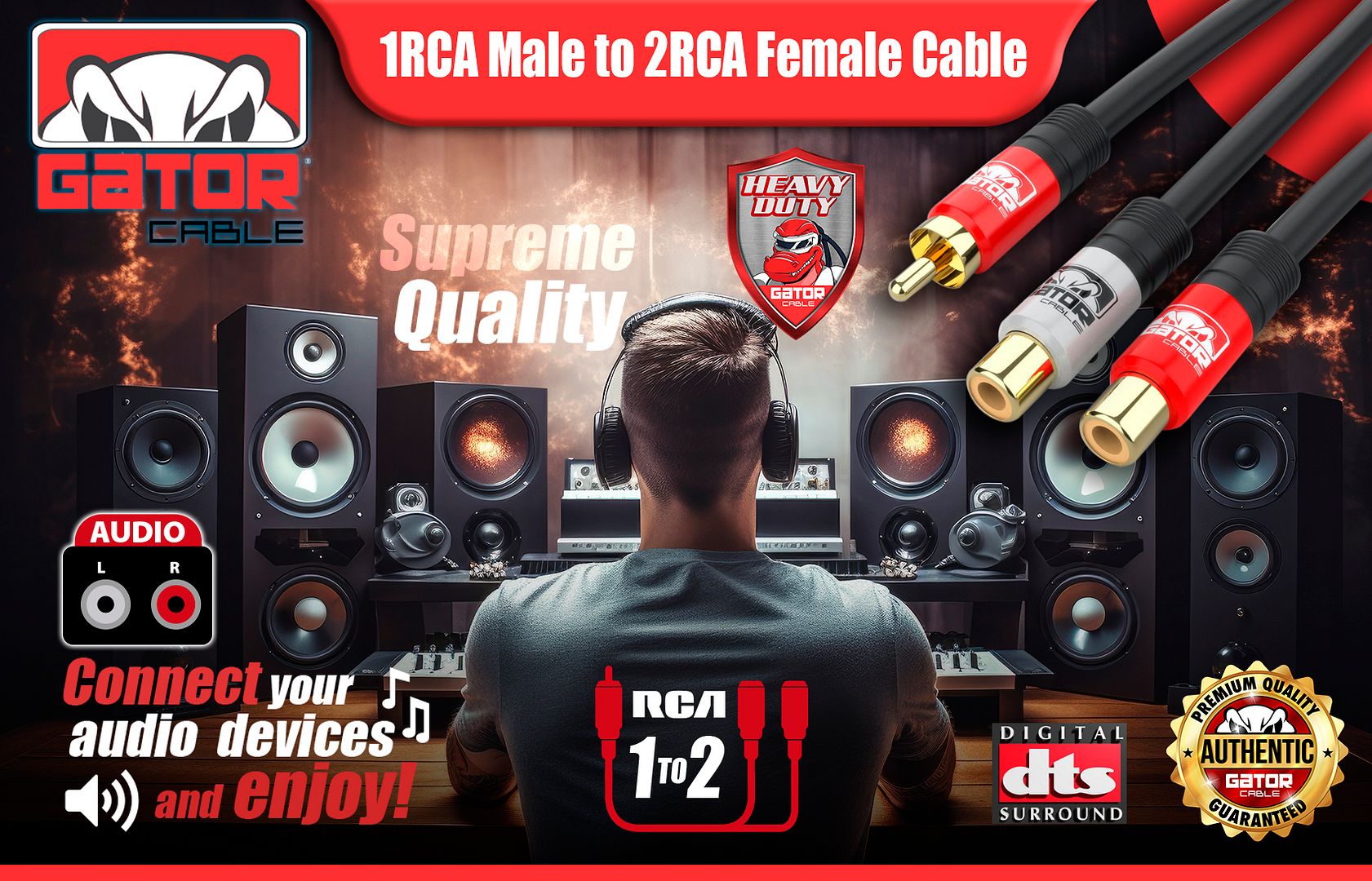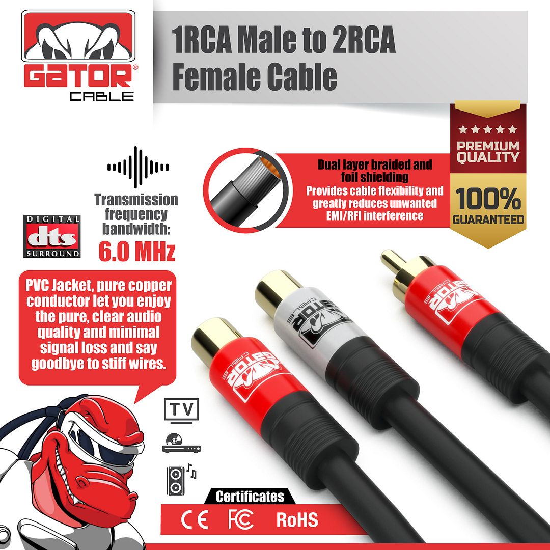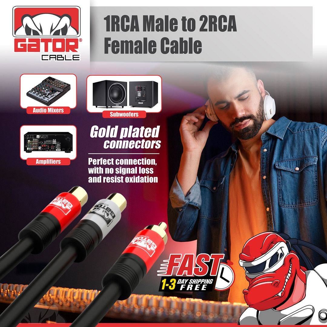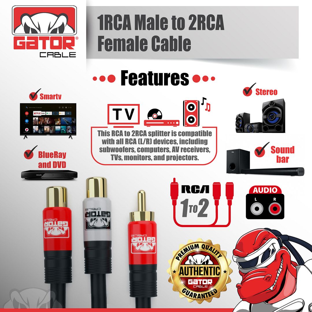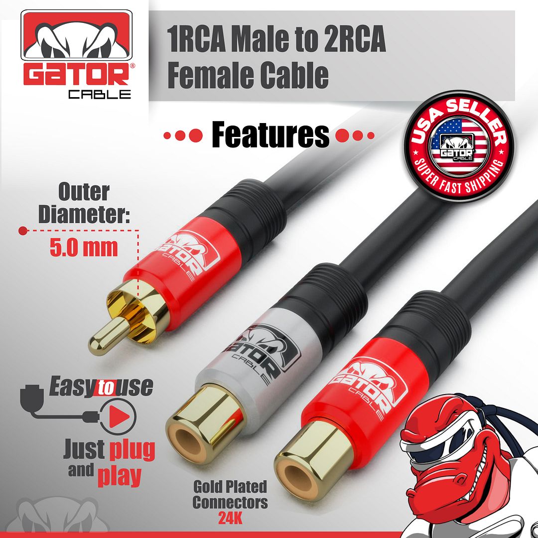 ![]() Gator Cable1 RCA Male to 2 RCA Female Y Stereo Audio Cable1 RCA Male to 2 RCA Female Subwoofer Audio Cable Metal Tough Casing-ShellColor: Red/SilverApplications: SPEAKERS, SOUND BARS, SUBWOOFERS,iPhone, iPod, iPad, Smartphones, Android Smartphones, Android Devices, Mini Disc, CD, LCD TV, LED TV, DVD, PC and MAC Monitors, DAT, MP3, MP4, BLUERAY, XBOX, PS3, PS4, PS5 with fully enriched and detailed sound quality. Specifications: Type: RCA Interface: Analog Y Cable Adapter 24K Gold Plated Connectors Gauge: 12AWG Audio 1-RCA Male to 2-RCA Female Bi-Directional Audio 2-RCA Female to 1-RCA Male Bi-Directional Length: 1FT Outer Diameter: 5.0 mm Dual Layer Copper Shielding Dual layer shielded copper braided and protected by aluminum foil. Aluminum Metal Casing Application: TV, HDTV, LED TV, LCD TV, CD, DVD, Blu-Ray, DAT with fully enriched and detailed sound quality. Transmission frequency bandwidth: 6.0 MHz Attenuation: ≤0.2 dB/m Bend Radius: 5X core Diameter Certificates: CE/FCC/RoHS Compatibility: RCA Analog Audio Subwoofer Stereo Audio Male 1 RCA to Female 2 RCA Audio Male Cable designed for clean, crisp and clear sound quality. This cable is ideal for connecting Subwoofers, TVs, BlueRay Player, DVD Player, LED TV, LCD TV, Speakers, Sound Bars, Turn Tables, DJ, PC's, Mac's, and many more devices that are RCA compliant with RCA Audio input. 24k gold plated connectors aim to ensure high quality connection and corrosion resistance. Included in Package: 1 x 1-RCA Male to 2-RCA Female Y Cable