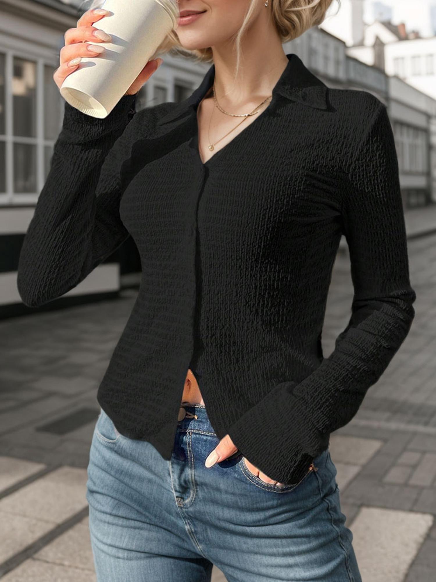 Women's Solid Button Front Shirt