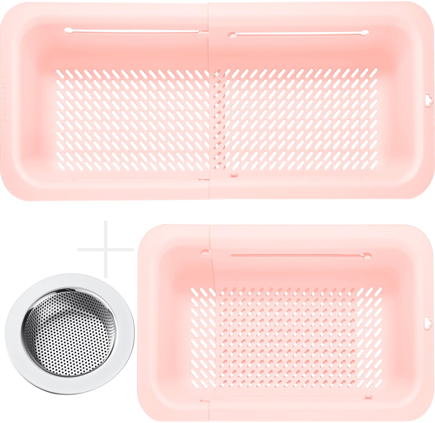 Over the sink extendable strainer, SIZE: 13-19 in (smaller space-saving design) . Stainless steel drain strainer, SIZE: Outer diameter: 4.5”; inner filter: 3”; depth: 1” . They fit for most kitchen sinks and drains.