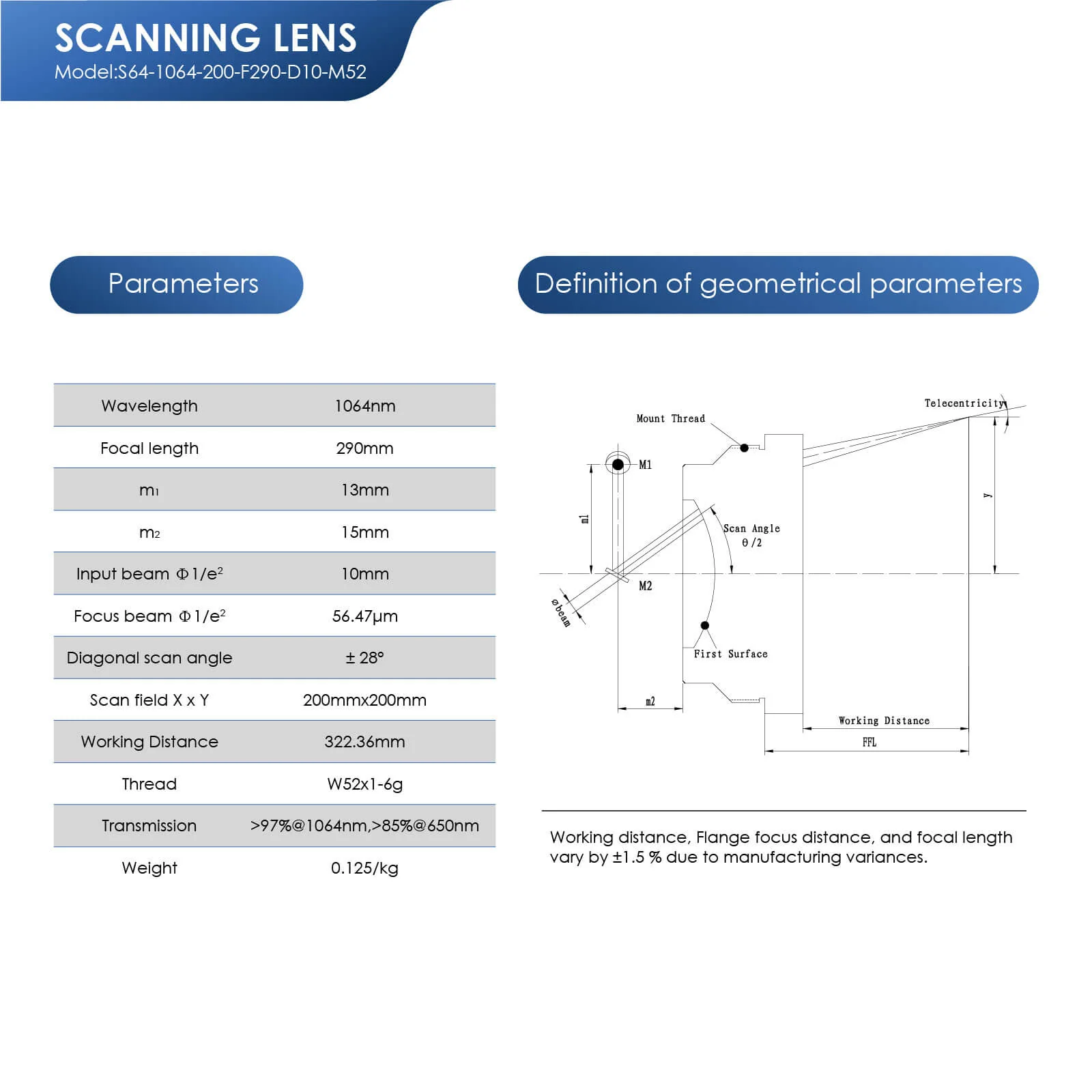 Monport F-theta M52 200mm*200mm Replacement Optical Scanning Lens for Fiber Laser Engraver