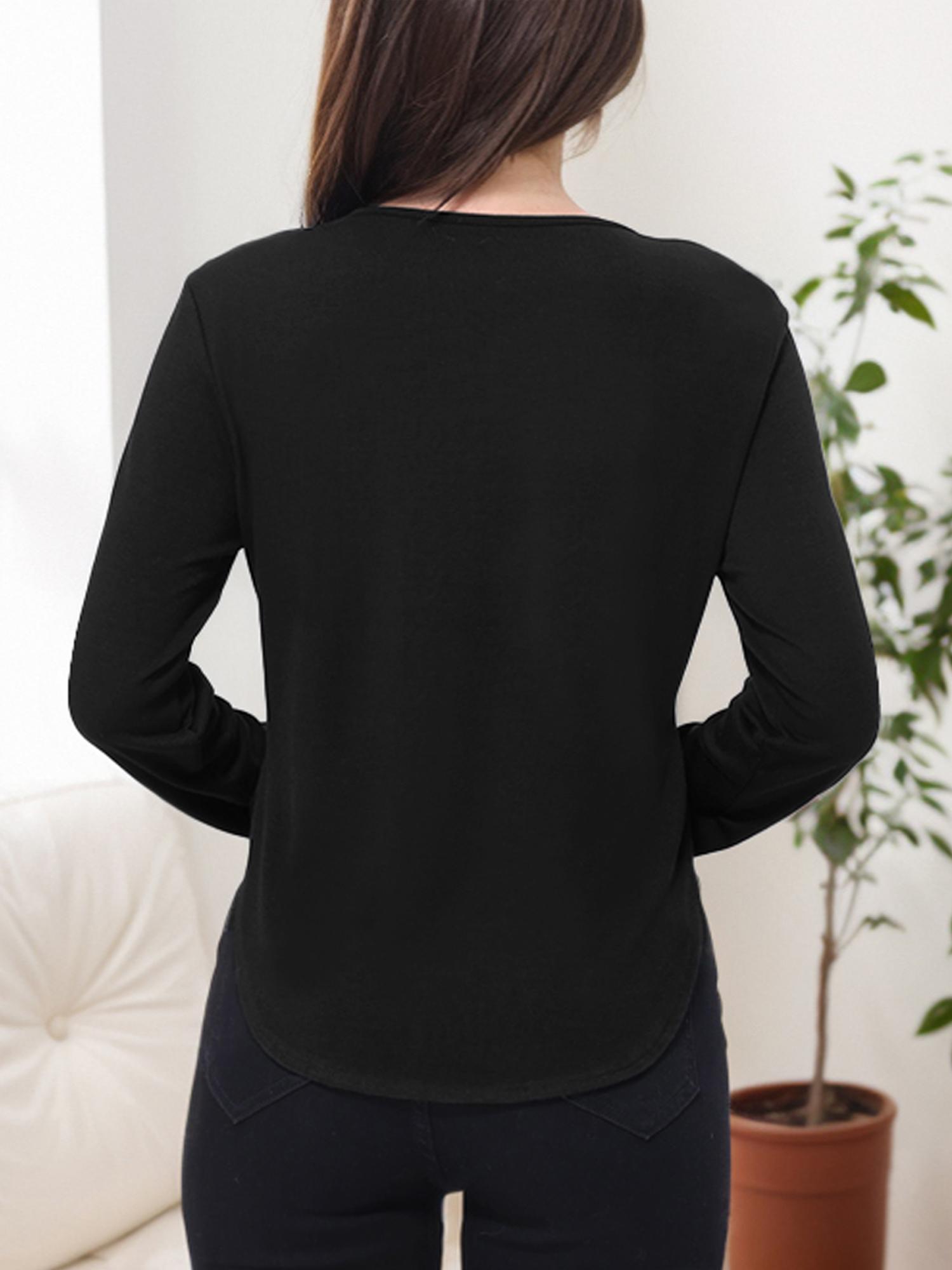 Women Casual Curved Hem Long Sleeve Loose Fit T-Shirt Top