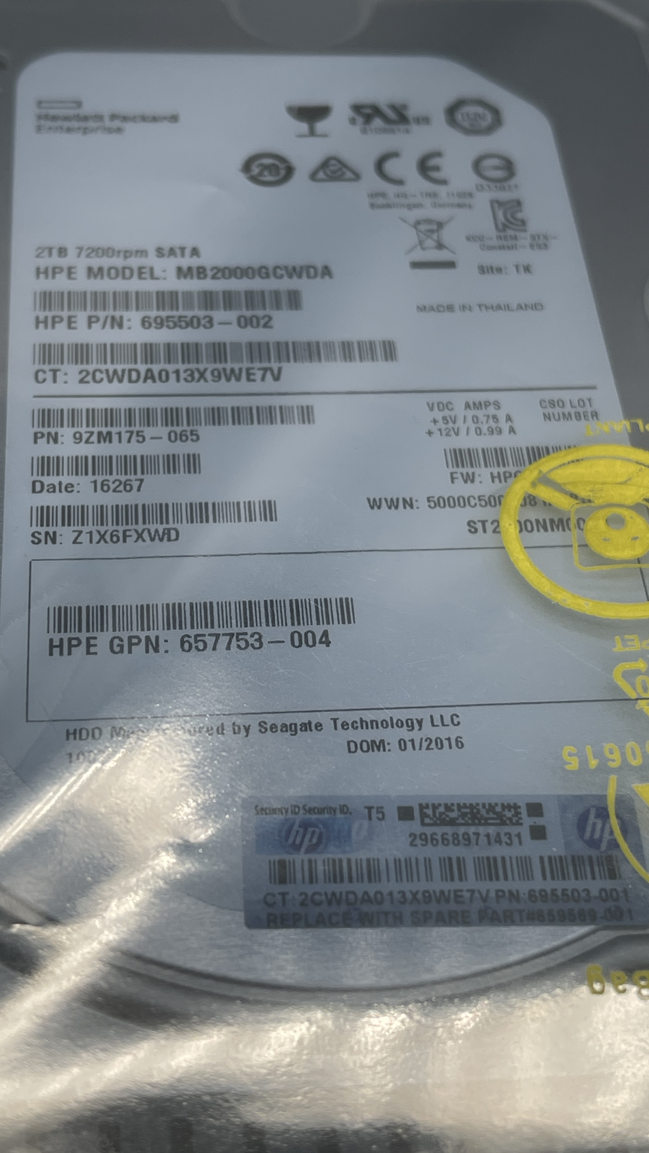 Brand New HPE 657753-004 2TB 7.2K 6G 3.5 MDL SATA HDD 658084-003