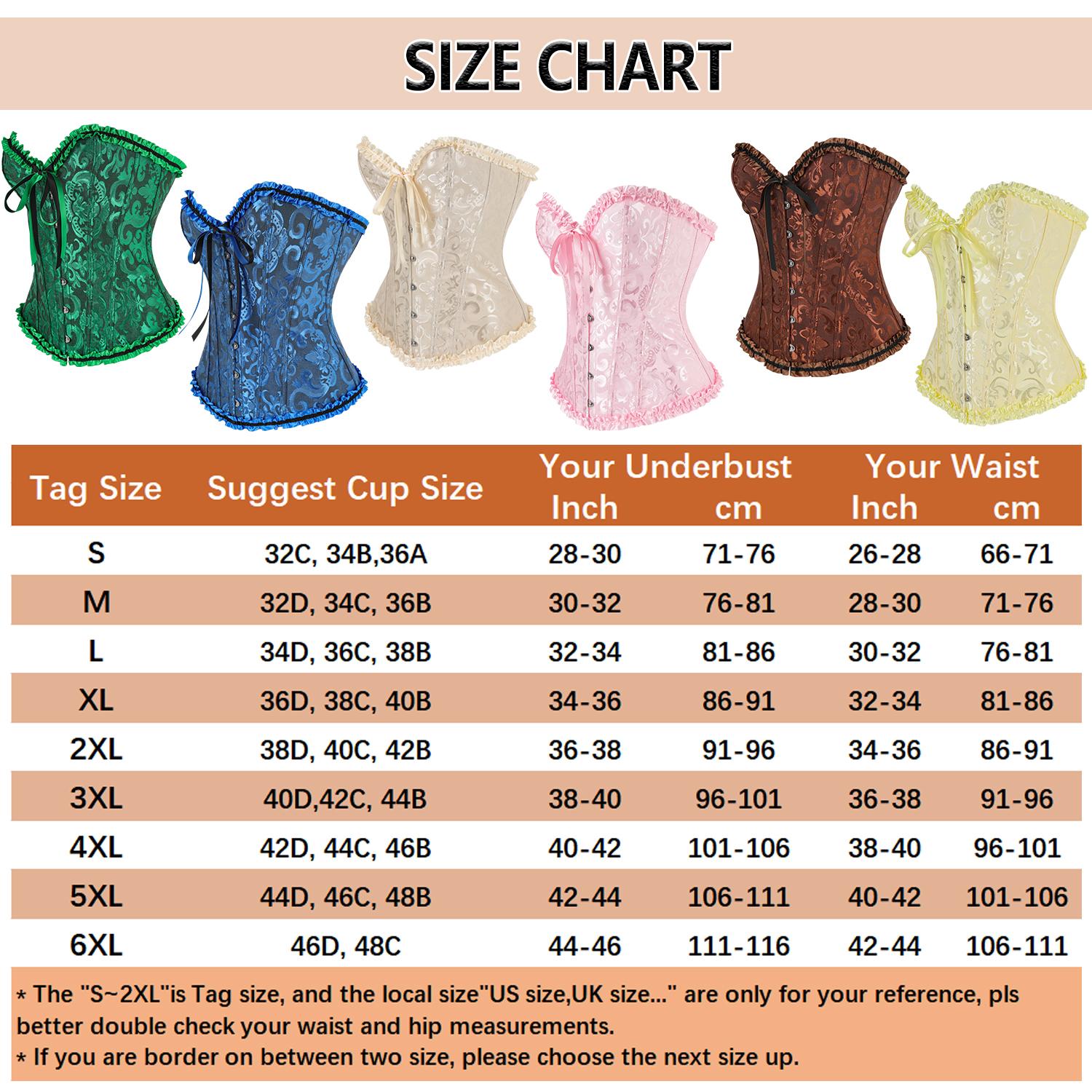 ADJUSTABLE FIT: The lace up corset has a busk front closure and adjustable laces on the back, so you can adjust it to fit your body perfectly. It's easy to adjust our corset vest: loose up the back laces and put it on, then latch all the front hooks securely, after that, all that is left is to tighten the laces on the back and tie them off. Please note that the corset bodysuit for women size will differ from US standard sizes. Check with the sizing chart to ensure you get a proper fit!