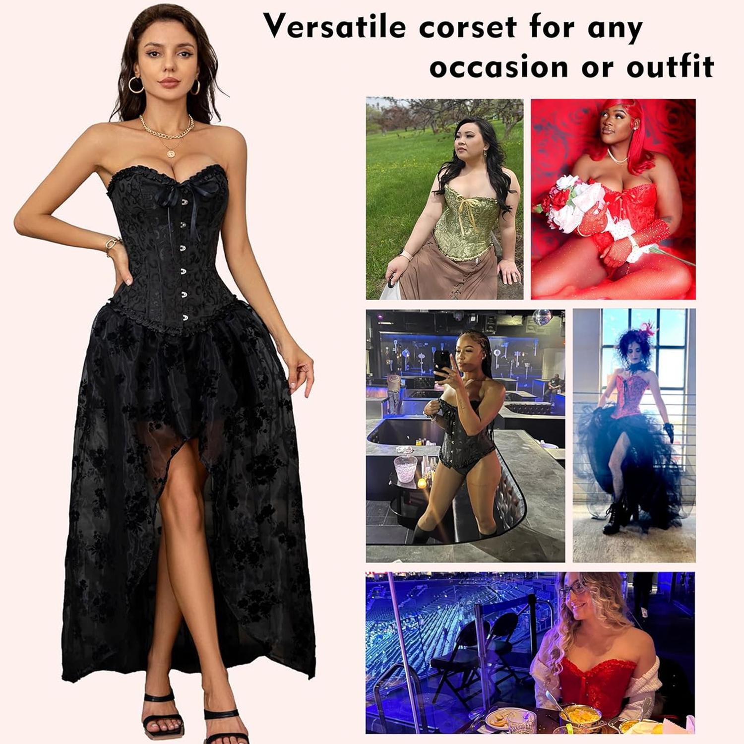 COMFORTABLE TO WEAR ALL DAY: Corsets are made with soft fabric that will mold around your body, making them comfortable for all-day wear! Our corsets for women are designed to be lightweight, breathable, and cozy so you can move in them freely. This bustier top supportive 12 plastic bone structure will help hold your spine upright so you look better and stay more energized. A waist corset will make you feel comfortable and confident in your body.