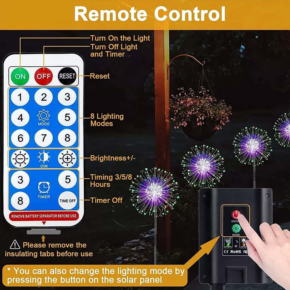 Bitte beachten Sie, dass 4PACK 120 LED + Remote Firework Light 4 in 1 Stil ist, nur mit einem Solarpanel.