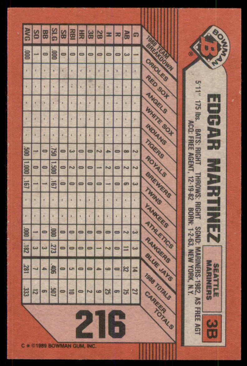 | 1989 Bowman Edgar Martinez Seattle Mariners #216 |