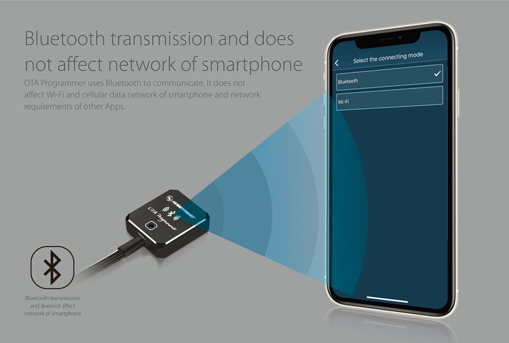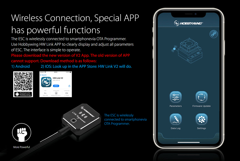 Der ESC stellt über den OTA-Programmierer mit der Hobbywing-HW eine drahtlose Verbindung mit dem Smartphone her