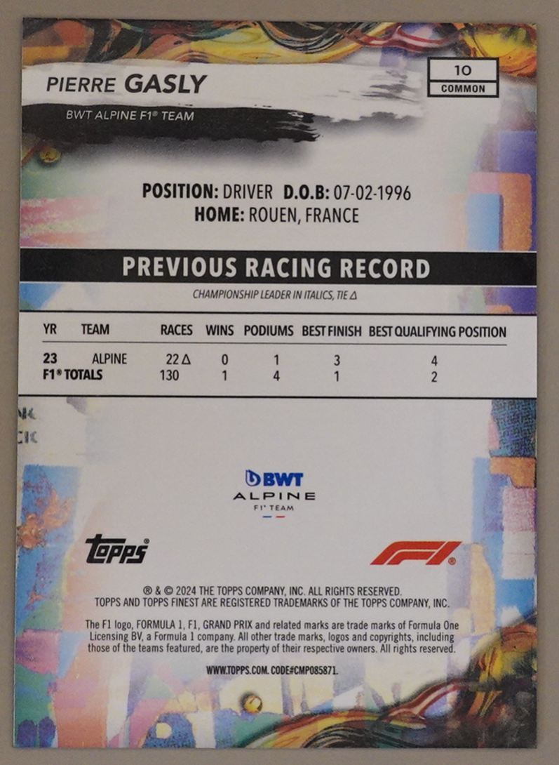 Pierre Gasly 059/200 2024 Topps Finest Formula 1 F1 Common Blue BWT Alpine F1