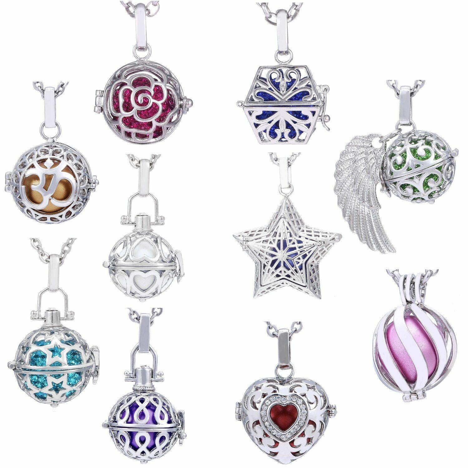 Die trendigen Halsketten mit einer Auswahl von verschiedenen Anhängern und Kugeln die ein klingeln bei Bewegung der Kugel erzeugen.
