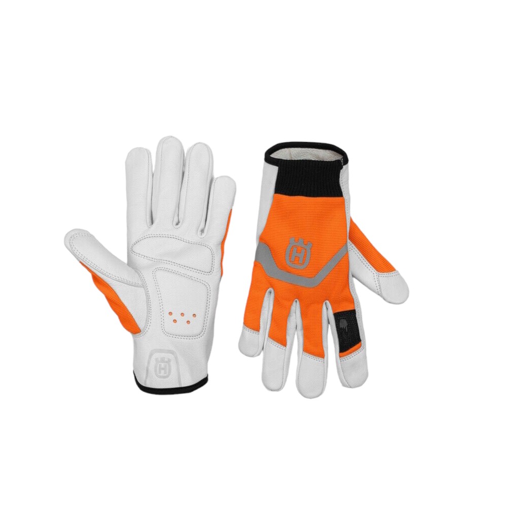 Comodi guanti protettivi progettati per il giardinaggio professionale e il lavoro forestale tutto l'anno in condizioni difficili. Il palmo di questo guanto da lavoro è realizzato in pelle crosta di capretto durevole e resistente all'acqua. L'imbottitura ammortizzante protegge l'interno della mano, mentre il polsino elastico tiene fuori lo sporco. Il logo riflettente aiuta a migliorare la visibilità. Il dito indice ha una nocca compatibile con il touch screen in modo da poter utilizzare lo smartphone con i guanti. Soddisfa EN 388:2016. Taglia 9 e 10 disponibili.