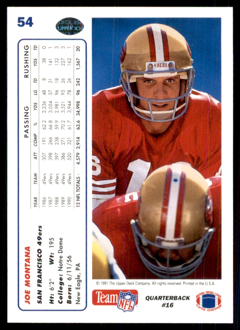 | 1991 Upper Deck Joe Montana San Francisco 49ers #54 |