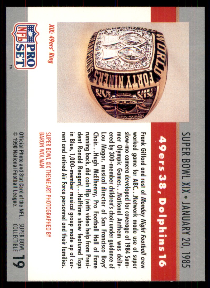 | 1990 Pro Set Super Bowl Collectibles Super Bowl XIX San Francisco 49ers/Miami |