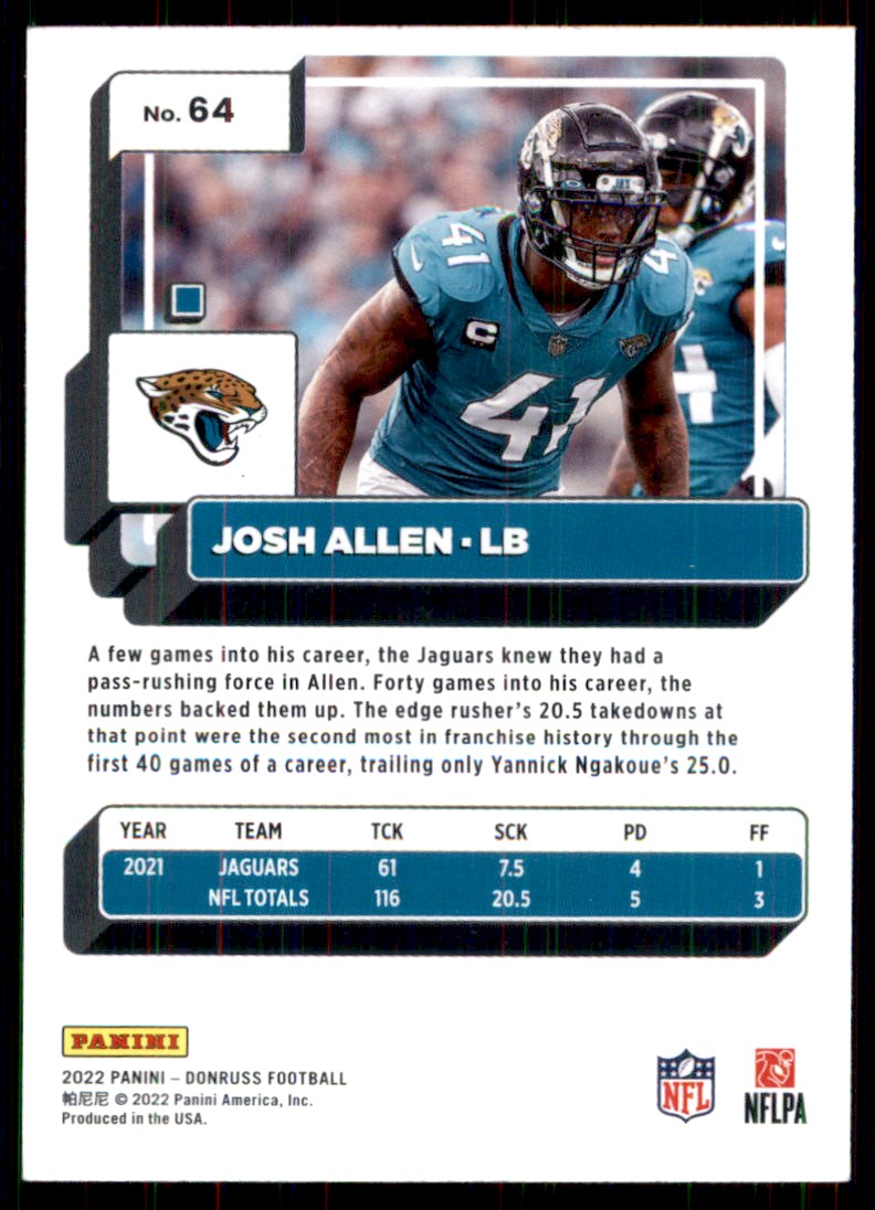 | 2022 Donruss Josh Allen Jacksonville Jaguars #64 |