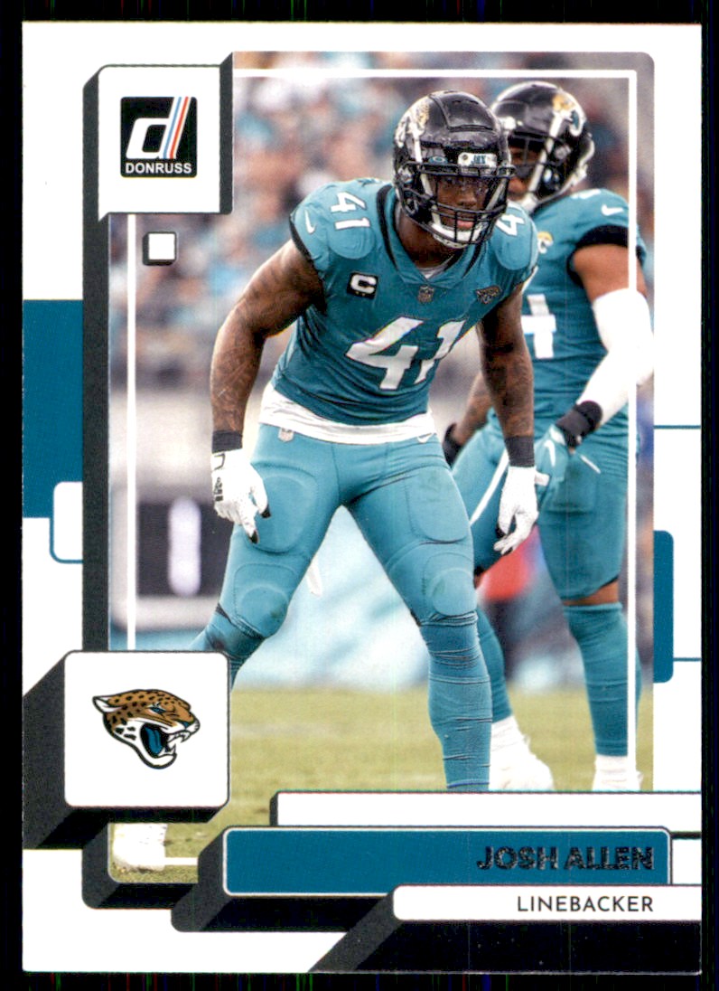 | Description: | Josh Allen | | Category: | Football | | Year: | 2022 | | Product: | Donruss | | Team: | Jacksonville Jaguars | | Card Number: | 64 | | Dimensions: | 3½" x 2½" | | SKU: | FT B0003 R04 A (28) |