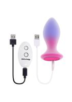 A classic tapered vibrating plug in a dual-layer silicone design. Colorful on the inside with a transparent outer layer, this sturdy remote-controlled plug looks like it belongs in Paradise. It’s got a solid-core center, but is silky smooth to the touch for the perfect hard-soft feel.
