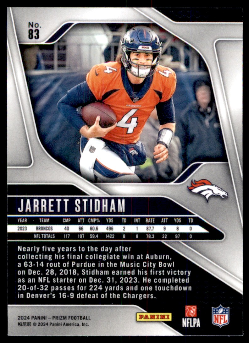 | 2024 Panini Prizm Jarrett Stidham Denver Broncos #83 |
