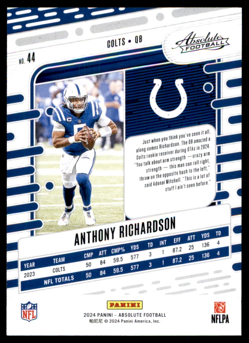 | 2024 Panini Absolute Anthony Richardson Indianapolis Colts #44 |