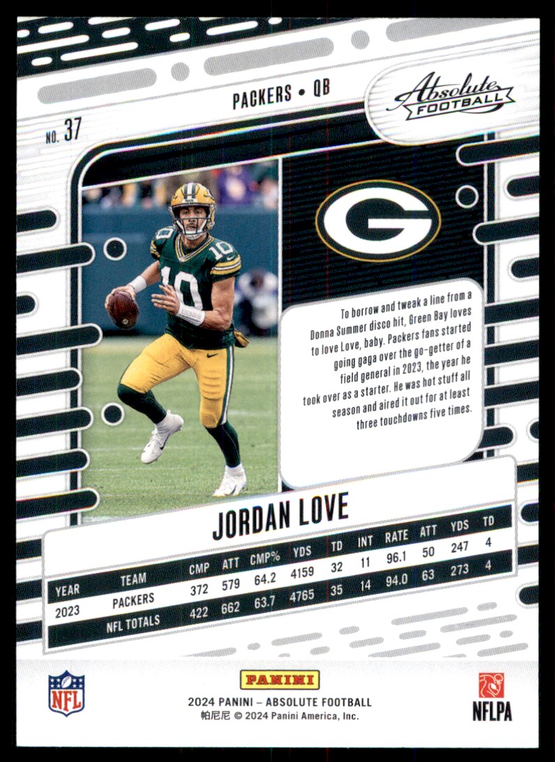 | 2023 Panini Absolute Jordan Love Green Bay Packers #37 |