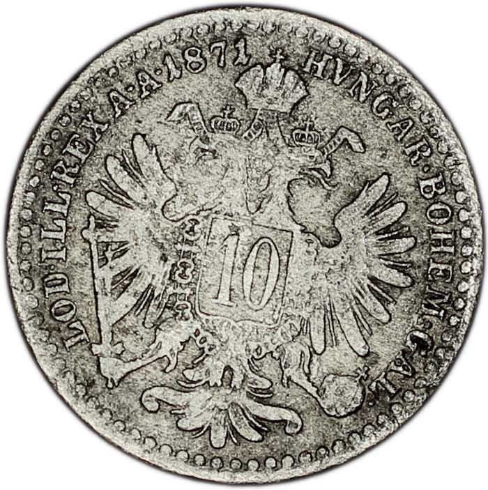 | AUSTRIA coin 10 Kreuzer 1871 Key date !!! | |||